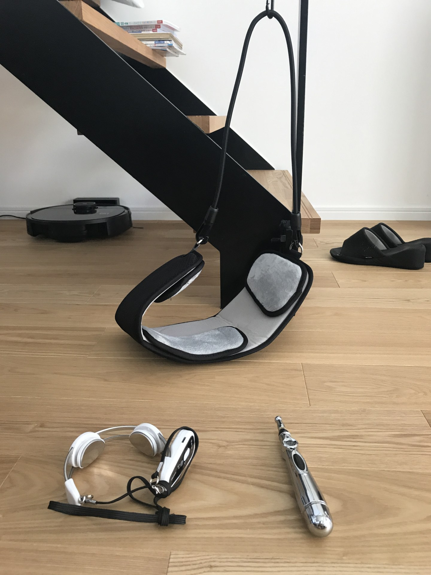 一つは以前から気になっていたネックハンモック。いわゆる牽引療法を応用したもの。