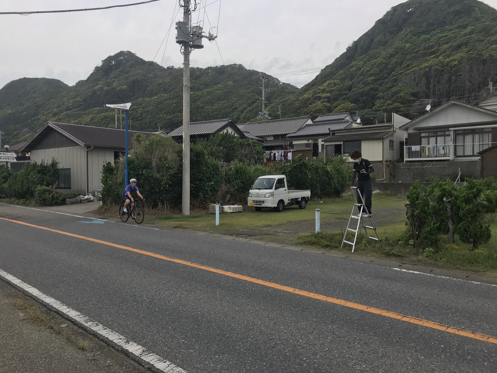 午前中、朝一でルミちゃん、小野さんと太平洋岸自転車道の矢羽と走る自転車の撮影にでかけた。