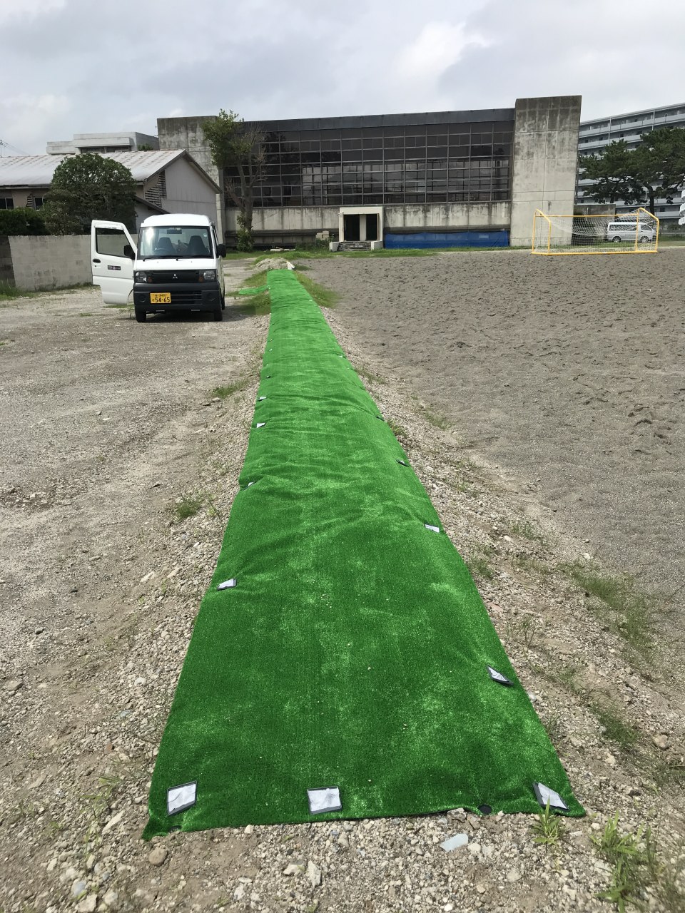 私は令徳高校へ行き、人工芝敷設などの作業を行う。