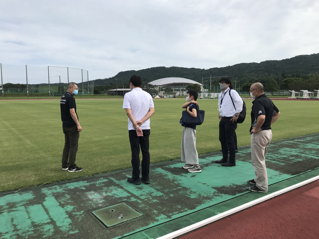 鴨川市陸上競技場のピッチも見学して帰っていった。