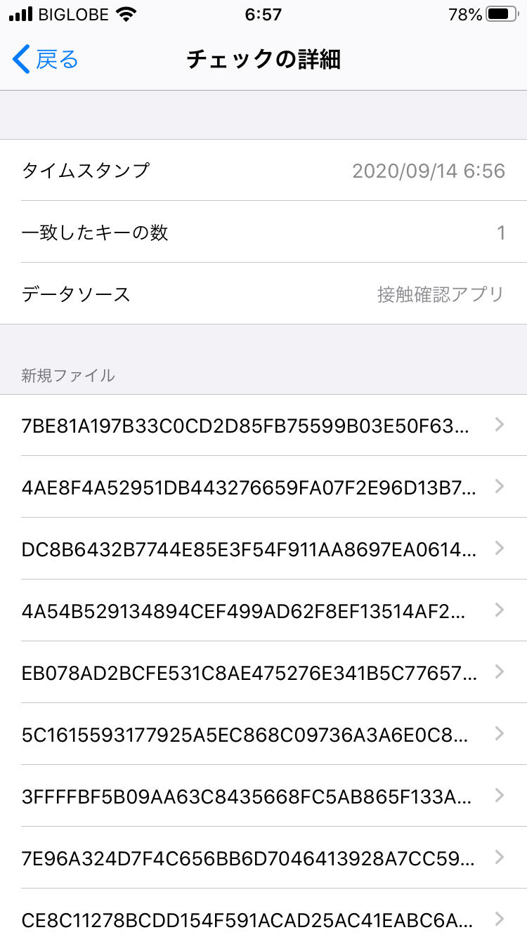 アプリが正常に動作していたなら、いつ接触されたか、日にちが表示されるのですが、このログをチェックする方法だとそれがわかりません。(これもこの不具合の致命的な点です)