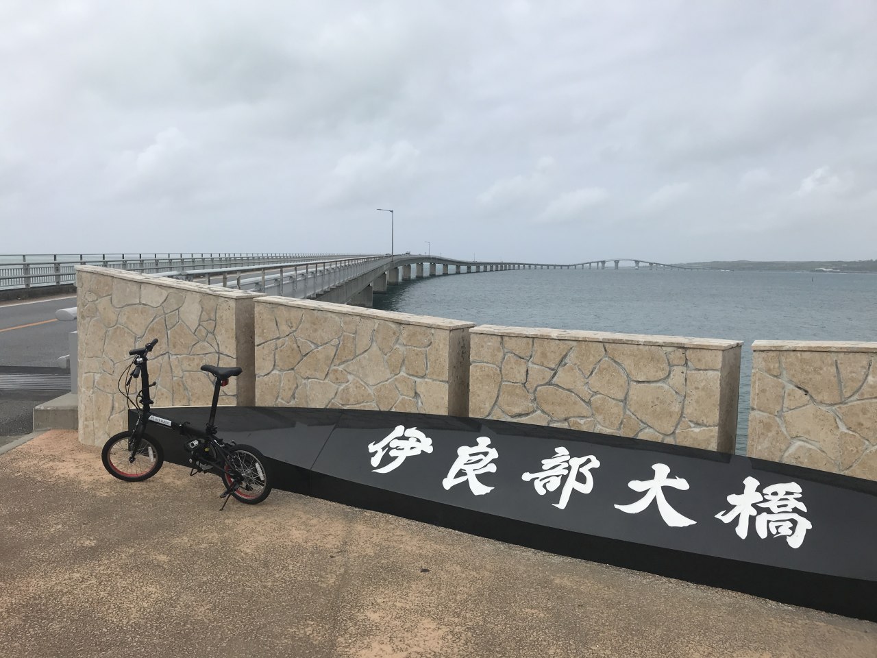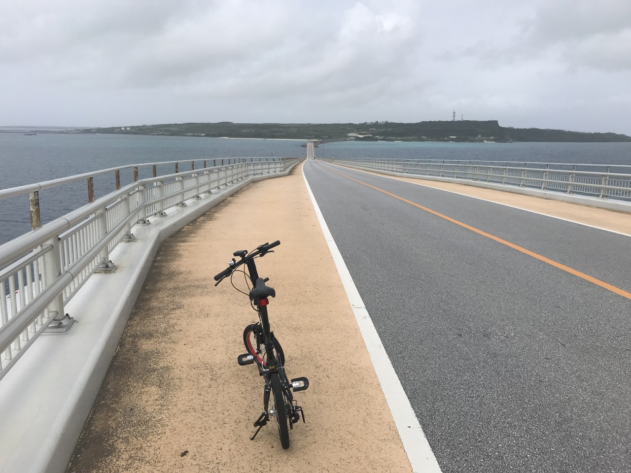 持参した折り畳み小径車に乗って、伊良部大橋を目指す。