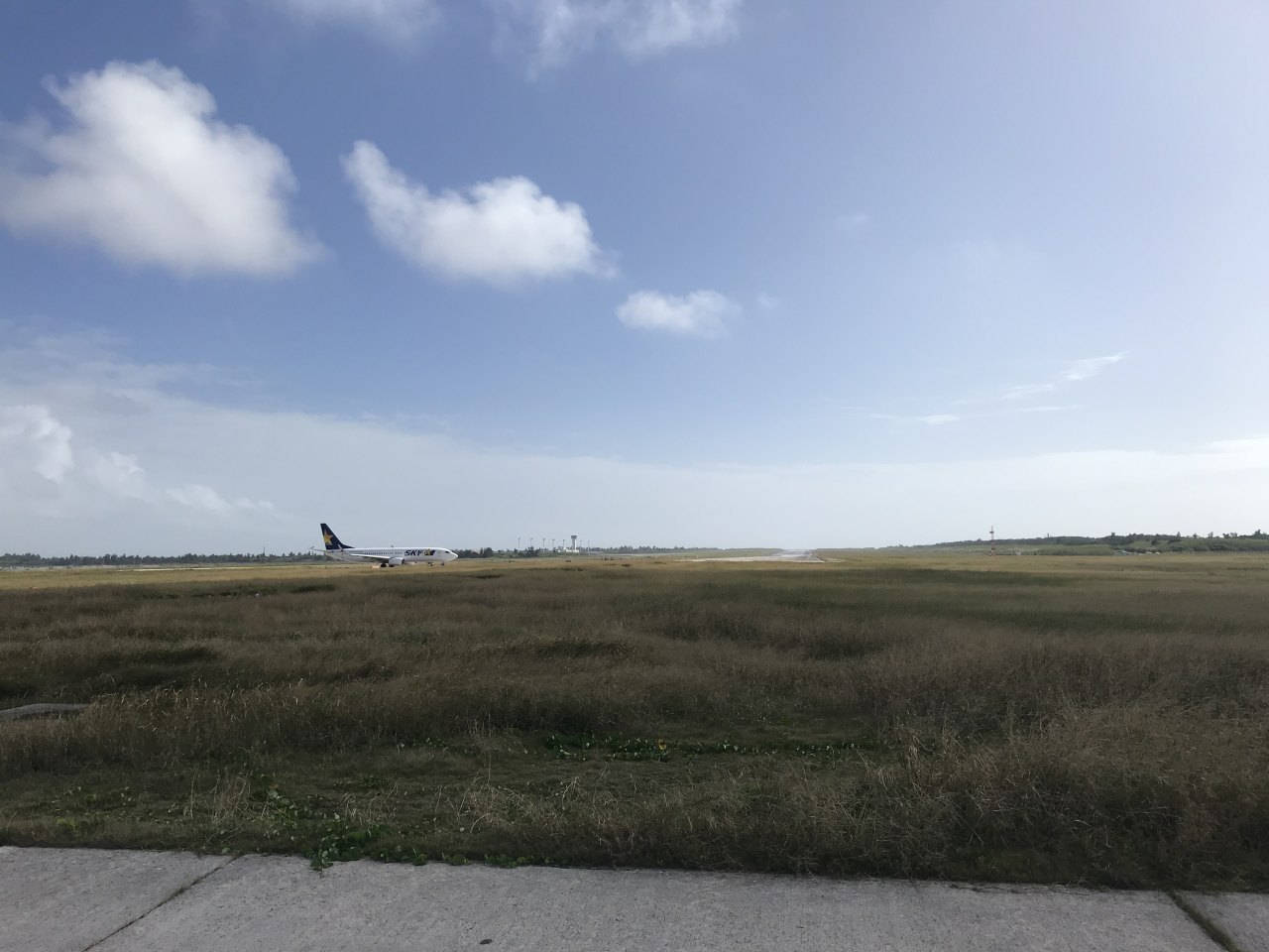 続いて、自転車をさらに走らせ、下地島の先端、ちょうど下地島空港の滑走路の延長戦上にあるスポットへ。ここは飛行機の離着陸を間近で見ることのできる、貴重な場所でもある。