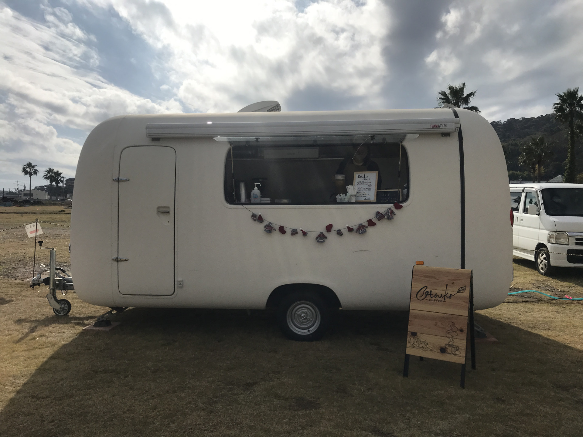 [写真:キッチンカーではコーヒーやはちみつレモンドリンクを販売