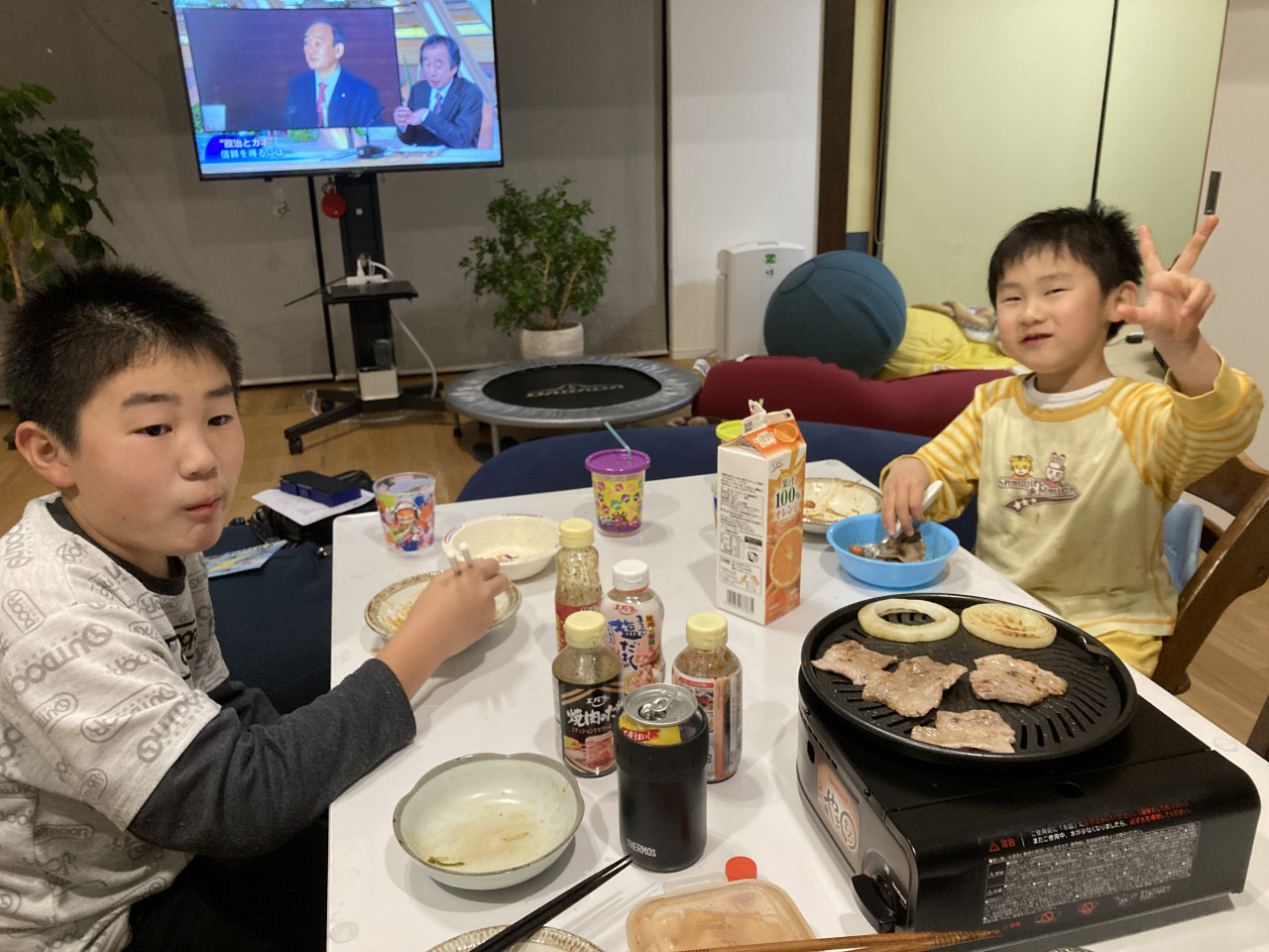 夜は子どもたちのリクエストもあり、家で焼肉。