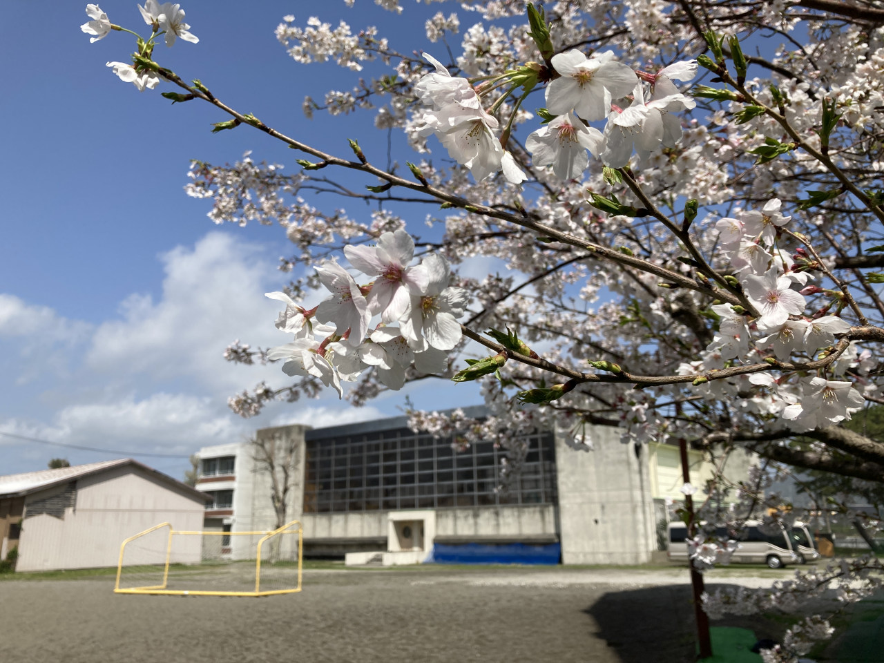 続いて、鴨川令徳ビーチコートへ行くと、ピッチサイドに1本立つ桜が満開を迎えていた。