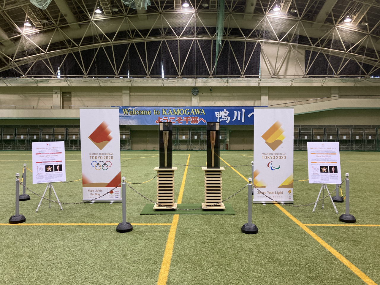今日は一日限定で、鴨川市文化体育館に2020東京オリパラの聖火リレーで使われるトーチが展示された。
