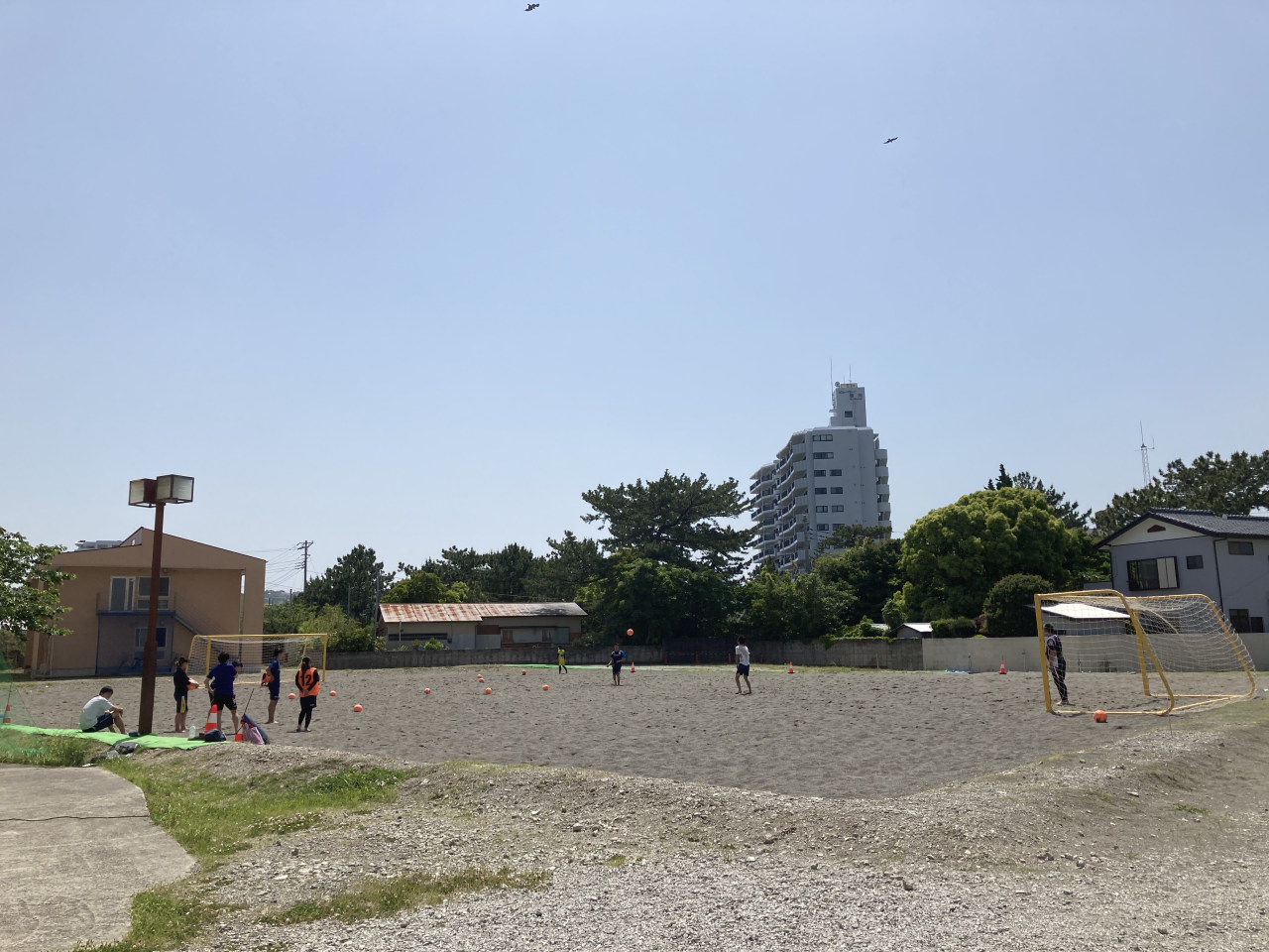 午前中、晴天の下、ビーチサッカー練習会。