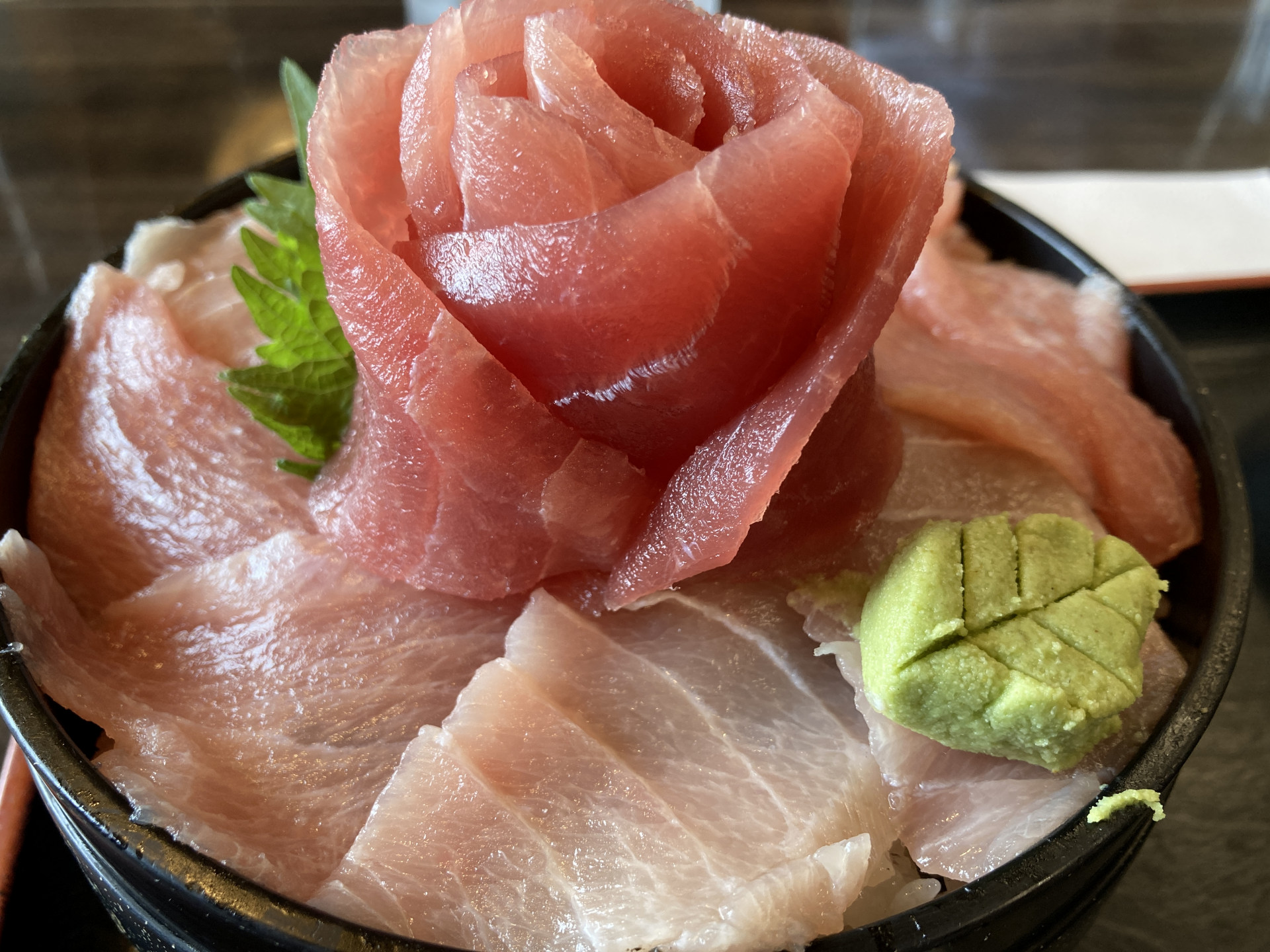 まぐろが盛り付けられ、ご飯の中にもまぐろが!