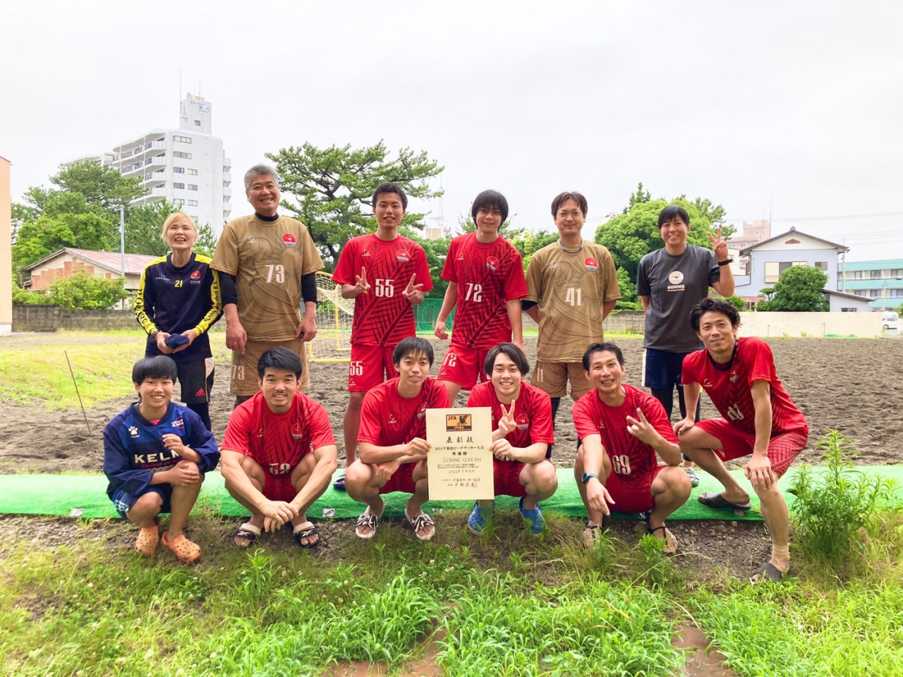 [写真:同日行われたビーチサッカー関東大会千葉県予選では、強豪バモスに2-3の惜敗。堂々の準優勝!