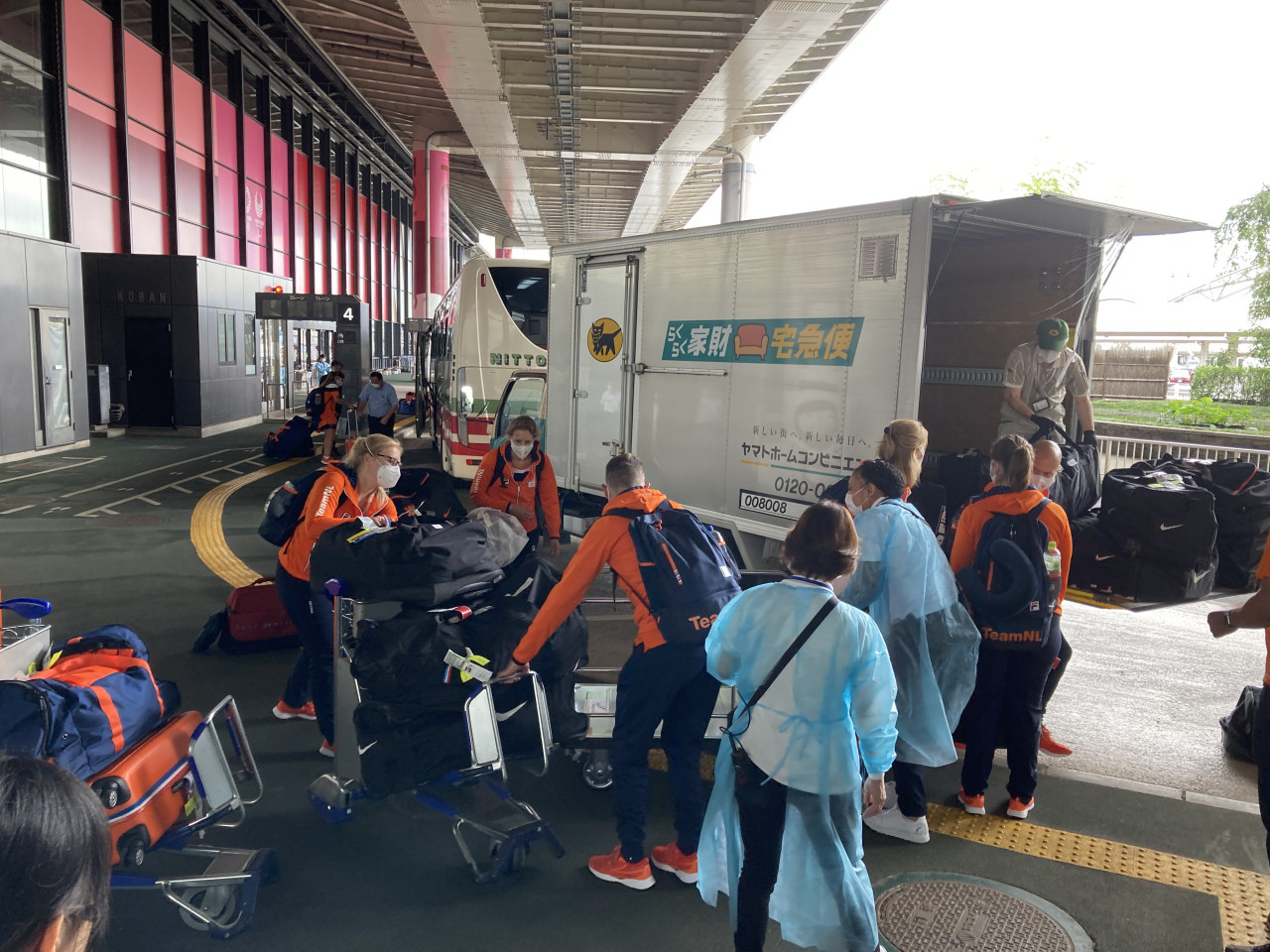 到着ロビーに着くと、まだオランダ選手団は外に出てきていなかった。