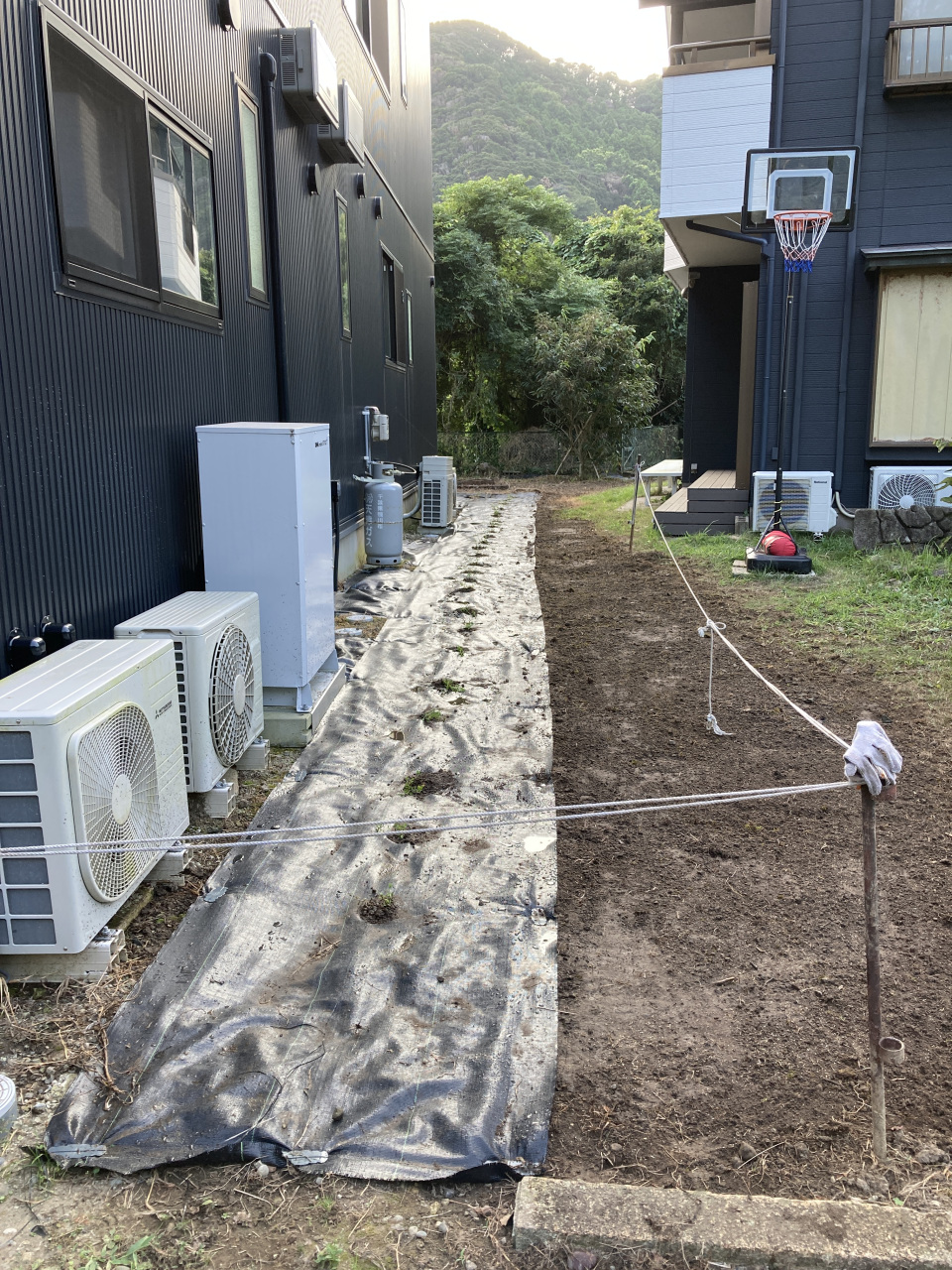 さらに、勢いで裏庭周辺の草刈やら、土均し。