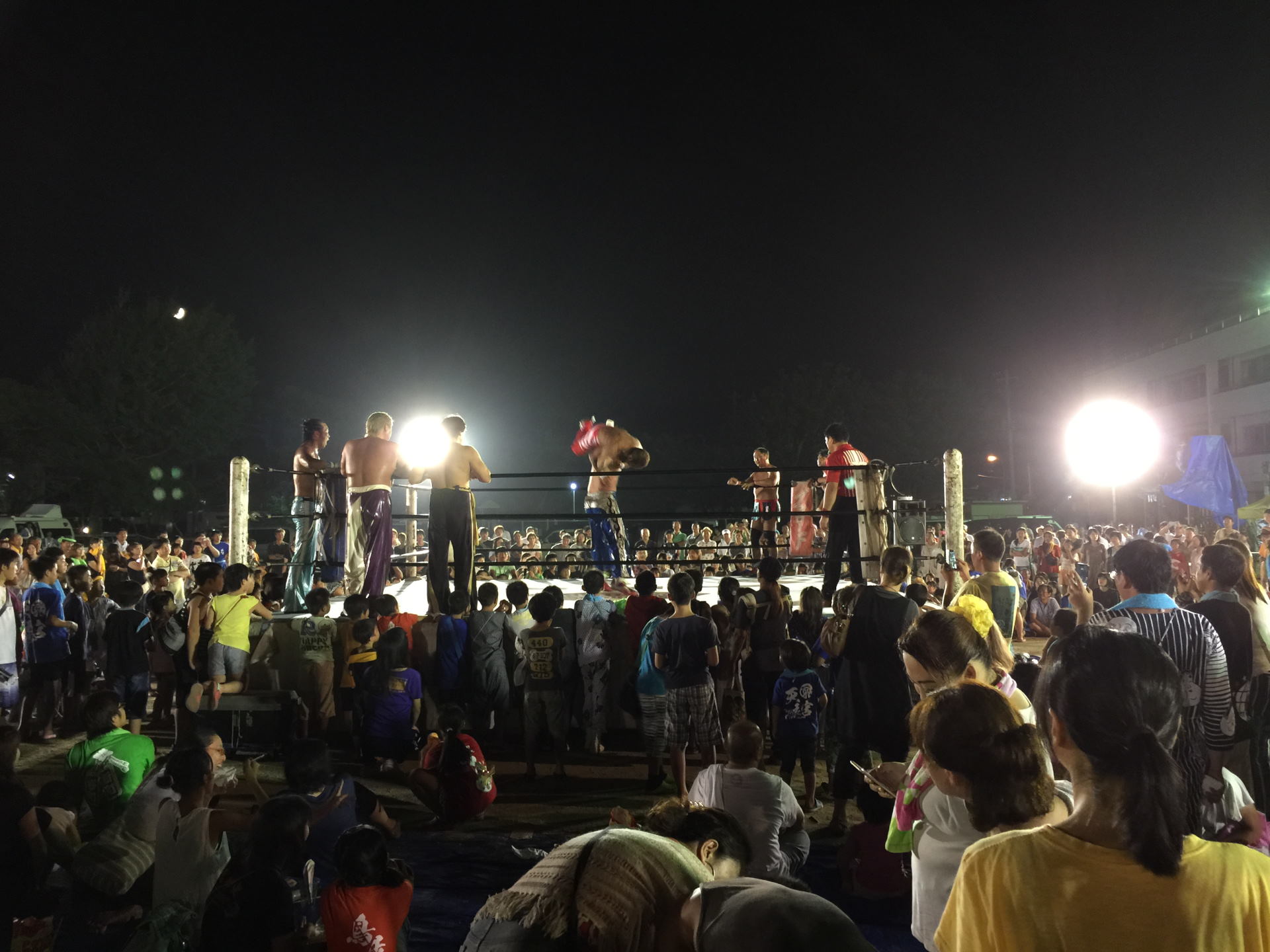 [写真:夜、天津小学校校庭ではZERO1プロレスを開催