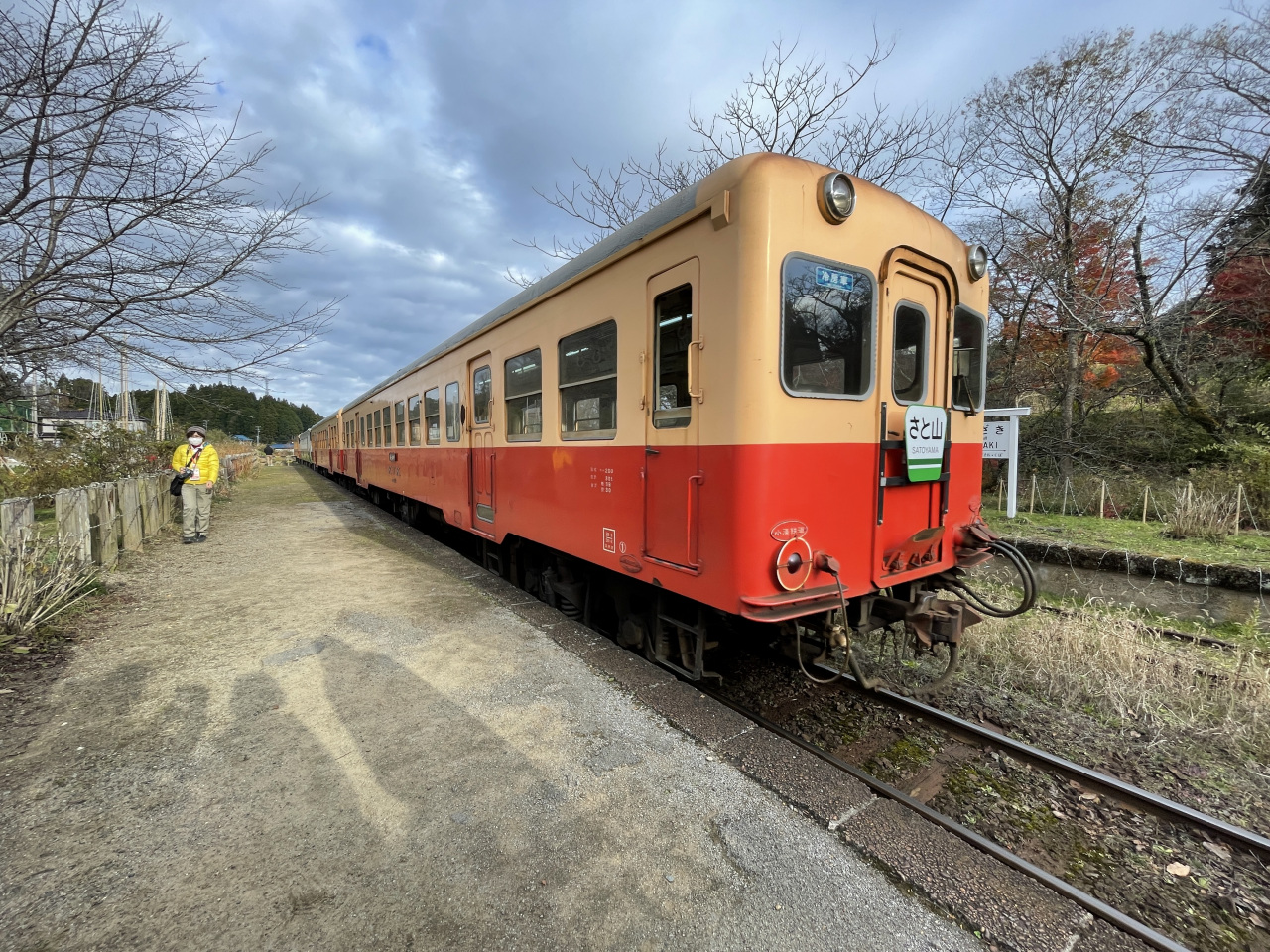 紅葉シーズンということもあり、養老渓谷駅周辺は結構な人出で、帰りの列車もなんと4両編成という豪華版。外房線は最近2両編成なのに、、、苦笑