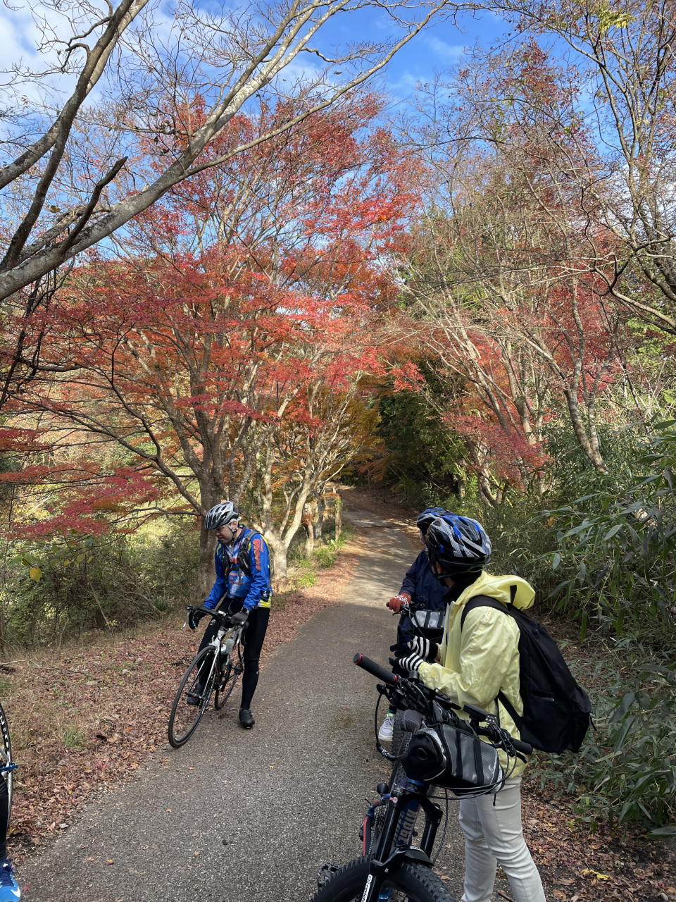 コースも紅葉が見頃を迎え、田園の中を開放感を感じながら走れたり、かと思えば、素掘りトンネル群など野趣あふれた林道を走ったりと、景観も変化して良いコースだったのではないかと思う。途中、結構な登り坂もあったので、e-bikeの魅力も堪能してもらえたのでは。