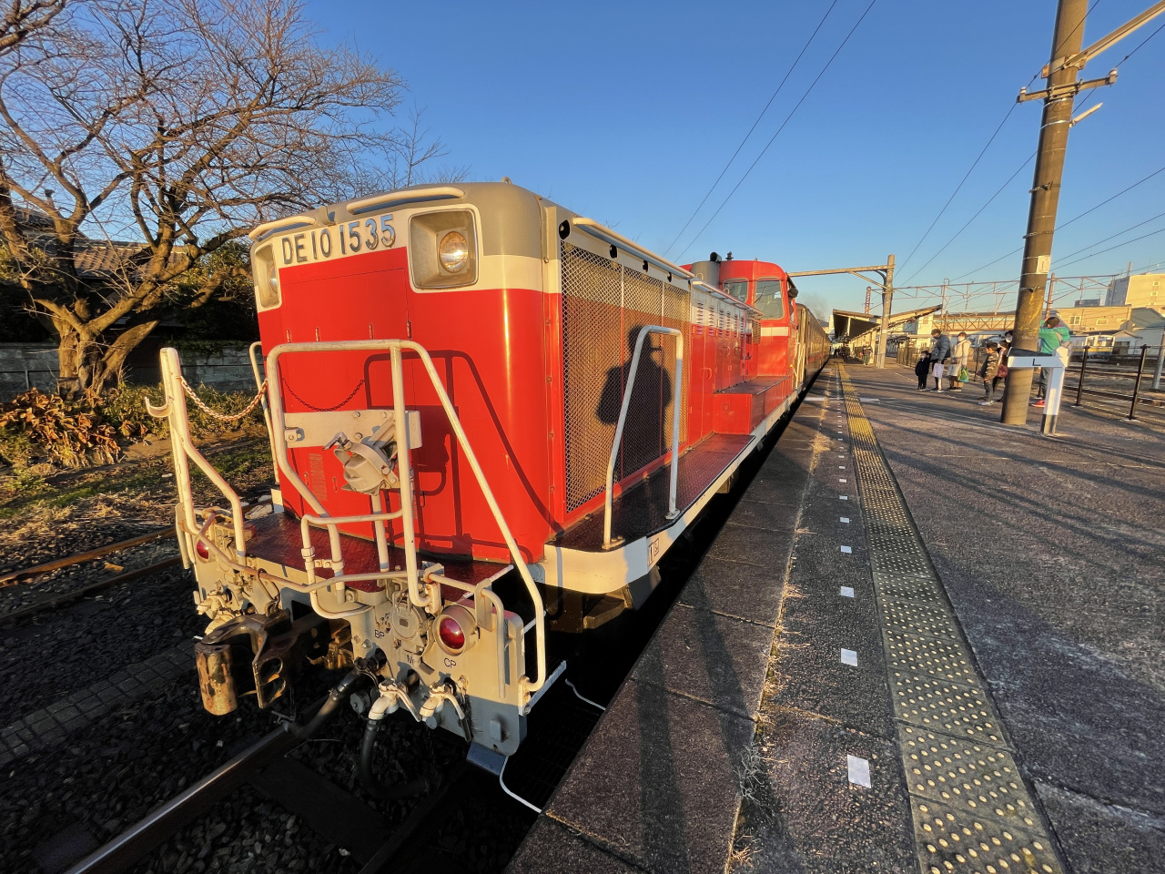 [写真:下館から真岡までの戻りはディーゼル機関車が牽引