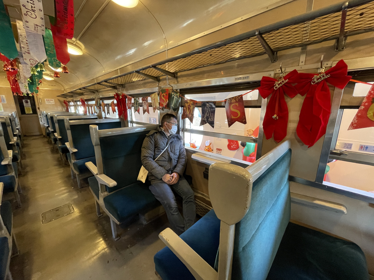 折しもクリスマスということで、車内ではサンタのかっこうを着たスタッフが乗り込んでいて、ケーキのプレゼントなどもあった。