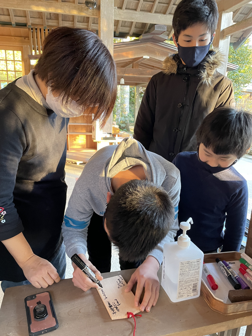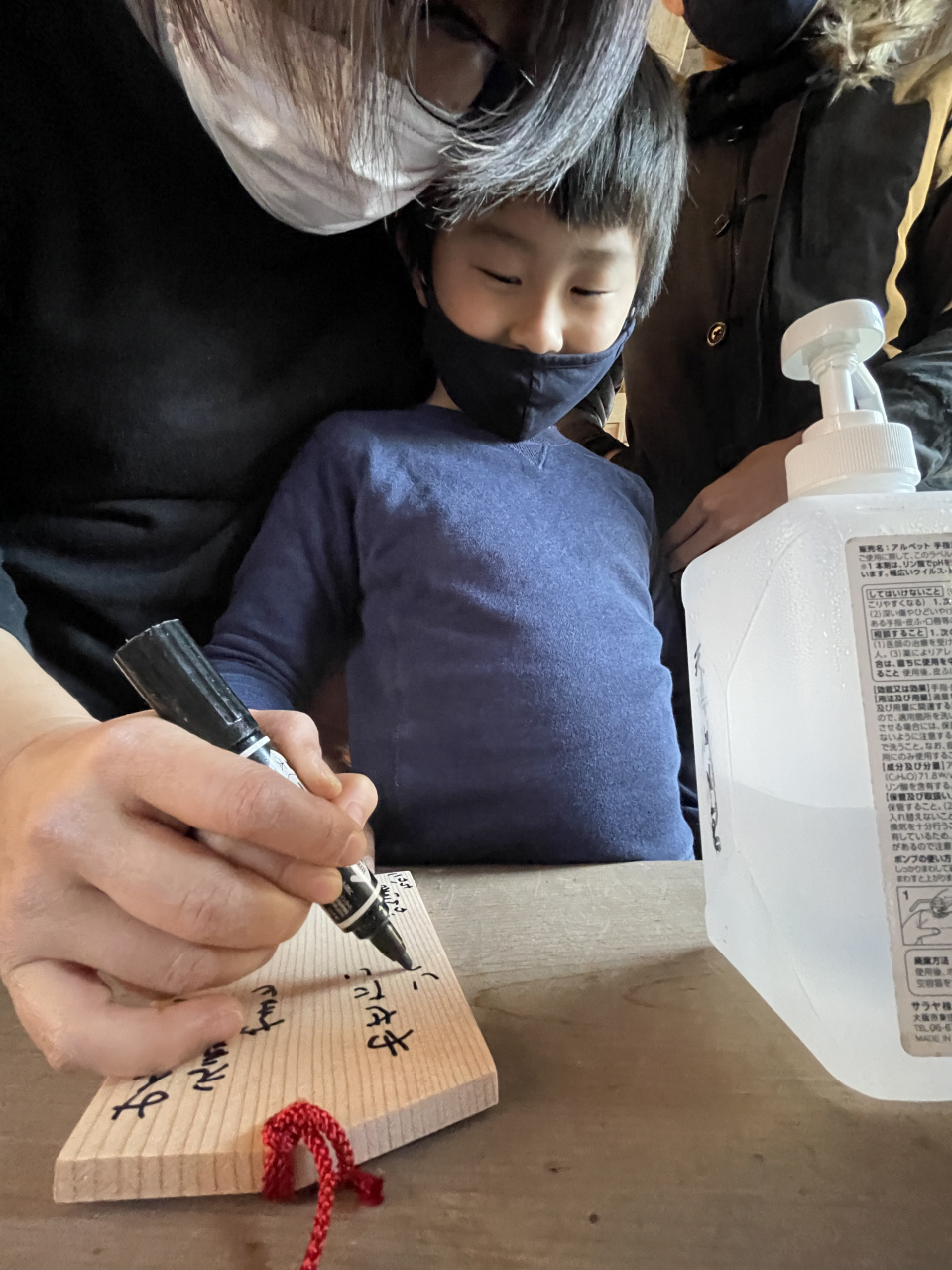 午後遅い時間になるとさすがに境内も閑散としてきたので、夕方、家族で初詣。