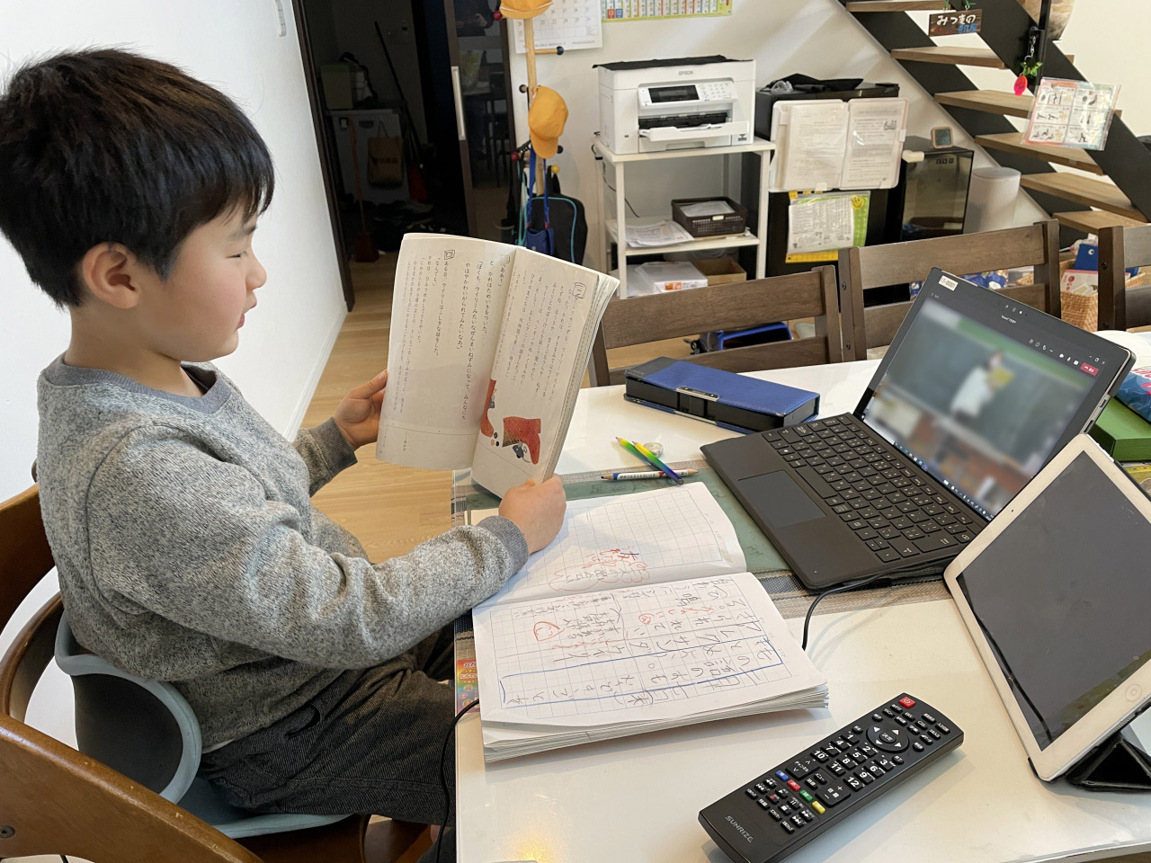 いぶたんは自宅でリモート授業を受けたが、ビックリしたのは、先生はもとより、いぶたん自身が小学2年生でありながら、パソコンを使いこなして、リモート授業をしっかりと受けていること。