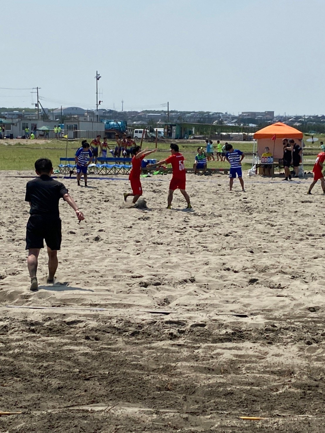 ピッチはすでに炎天下。砂の温度も上昇していて、なかなかハードなコンディション。