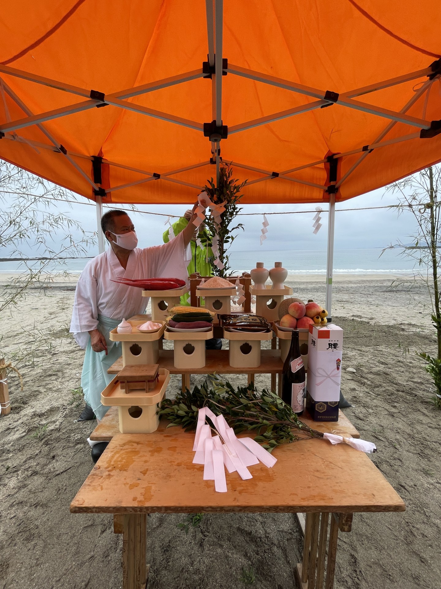 今日は午前中、鴨川市と鴨川市観光協会の主催による、海開き神事を御奉仕した。
