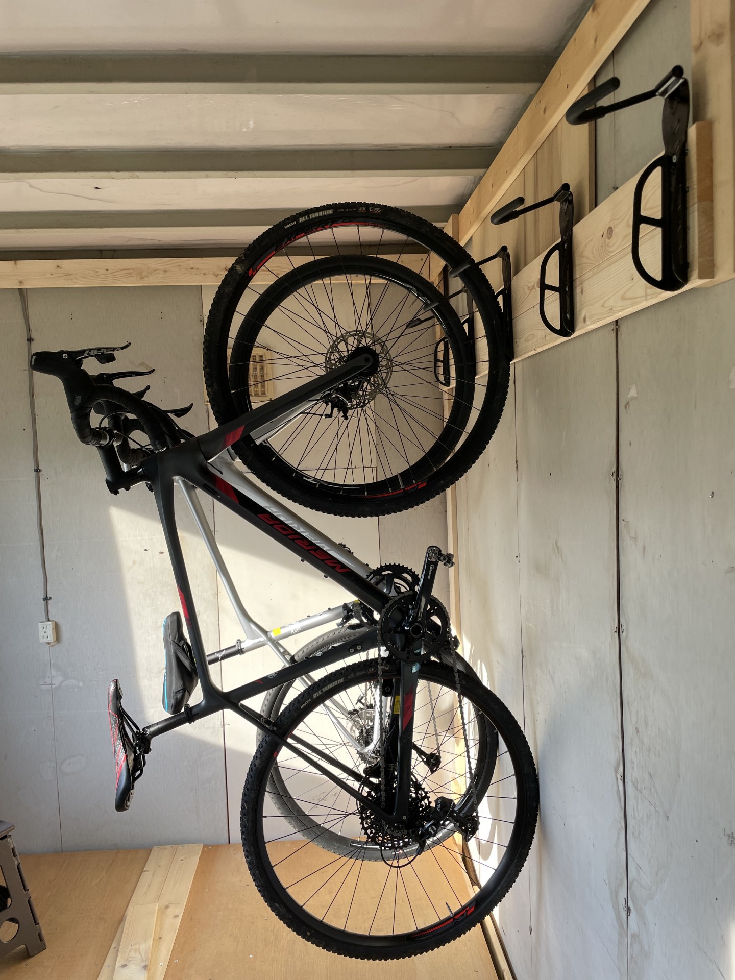 [写真:自転車を壁掛けできるようにした。