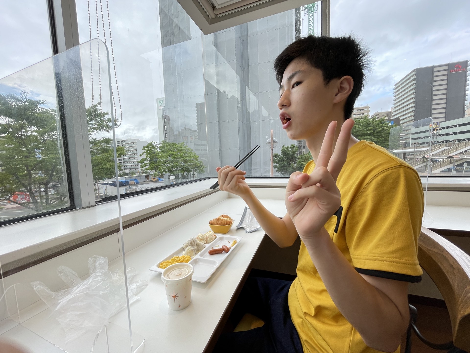 [写真:朝食食べて作戦会議