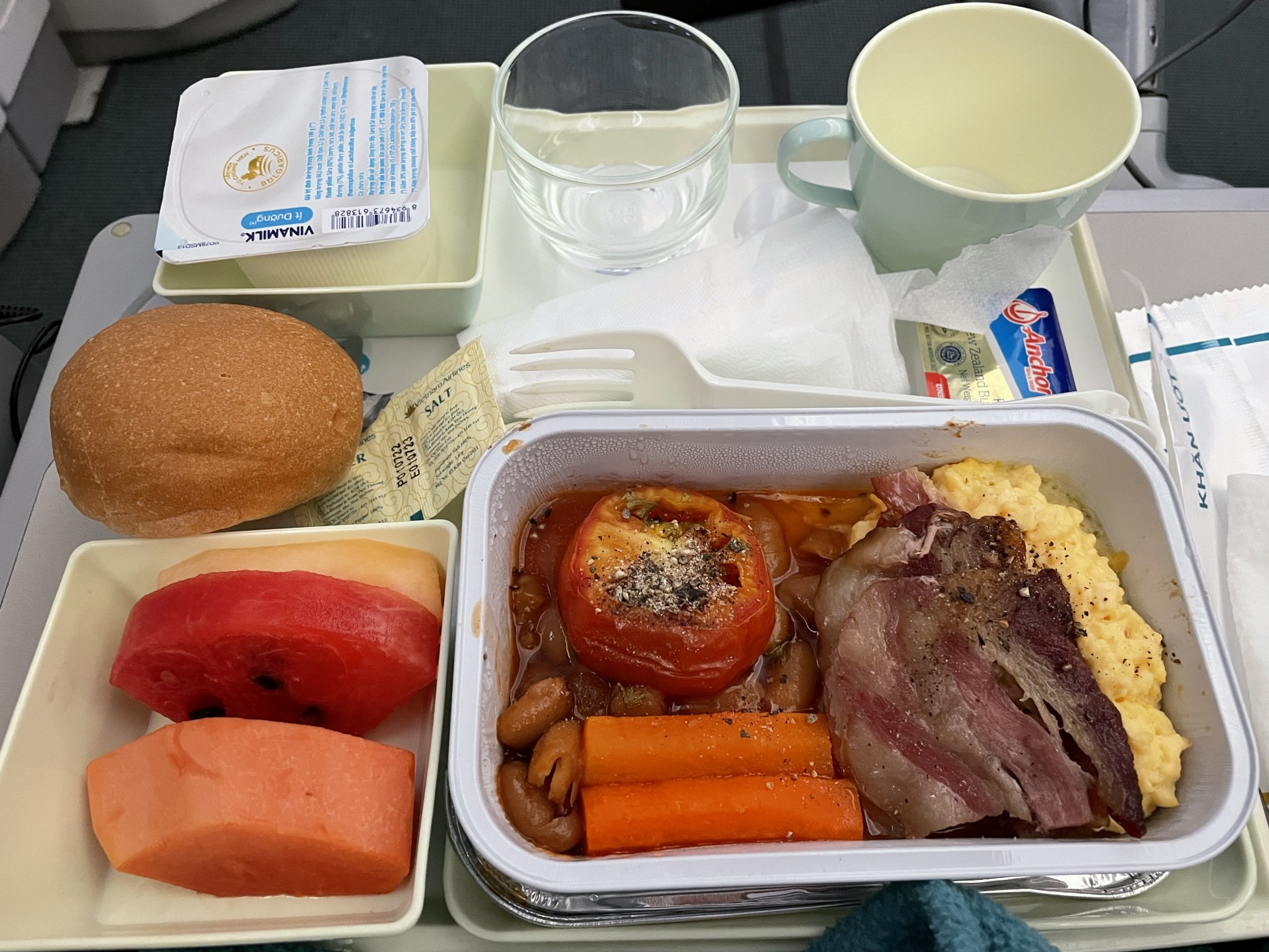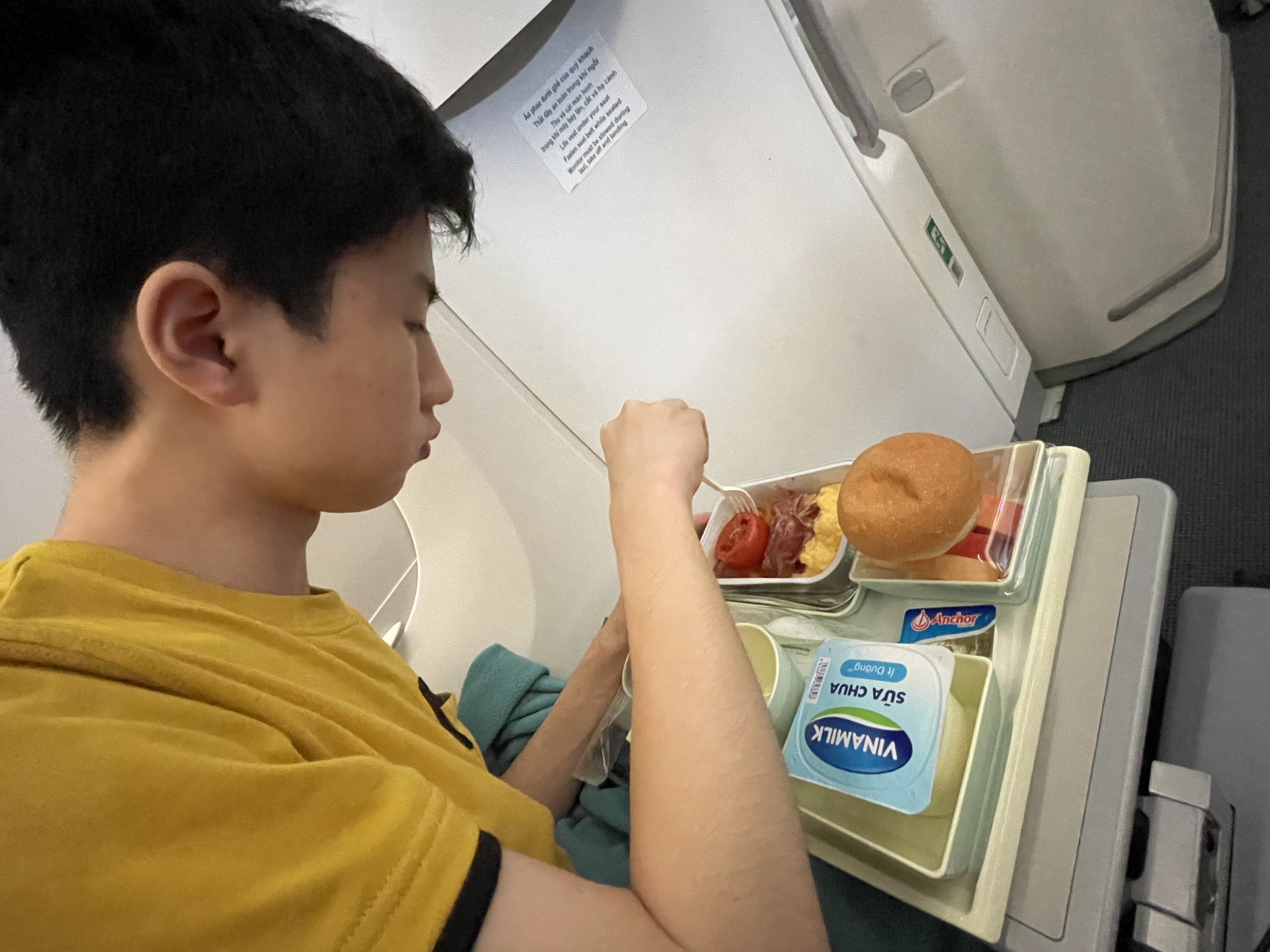[写真:シドニー到着1時間前にサーブされる朝食