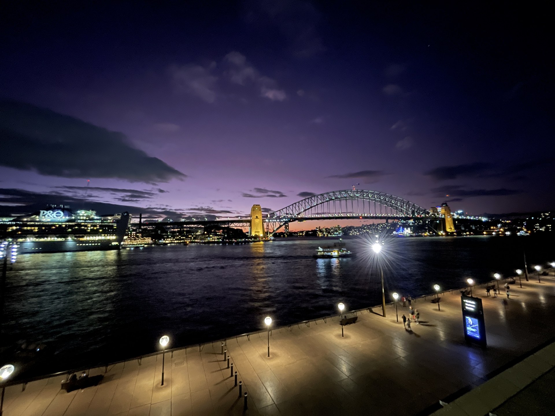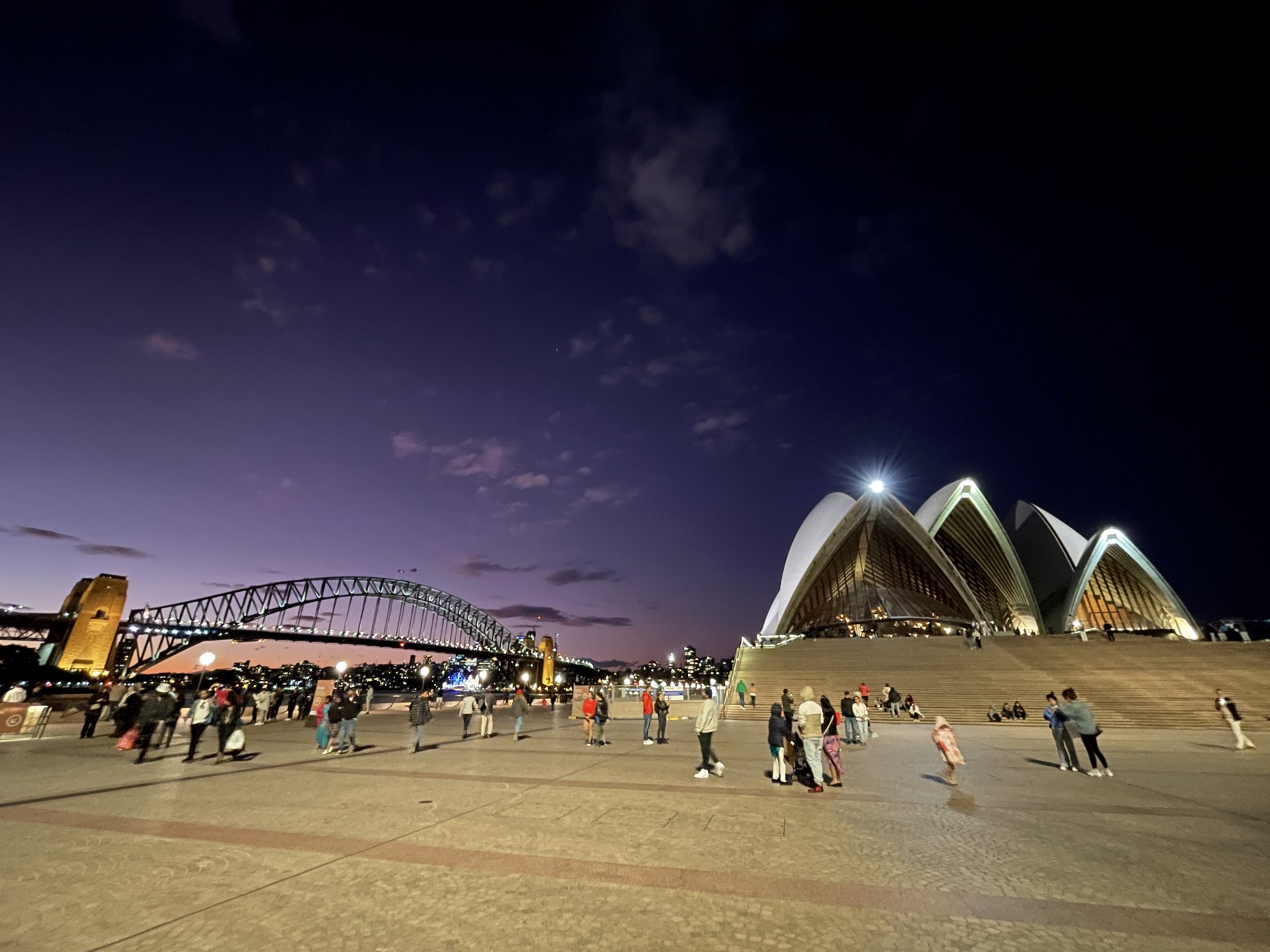 ちょうど夕暮れ時の絶妙な空をバックにシドニーを象徴する風景を楽しんだ。