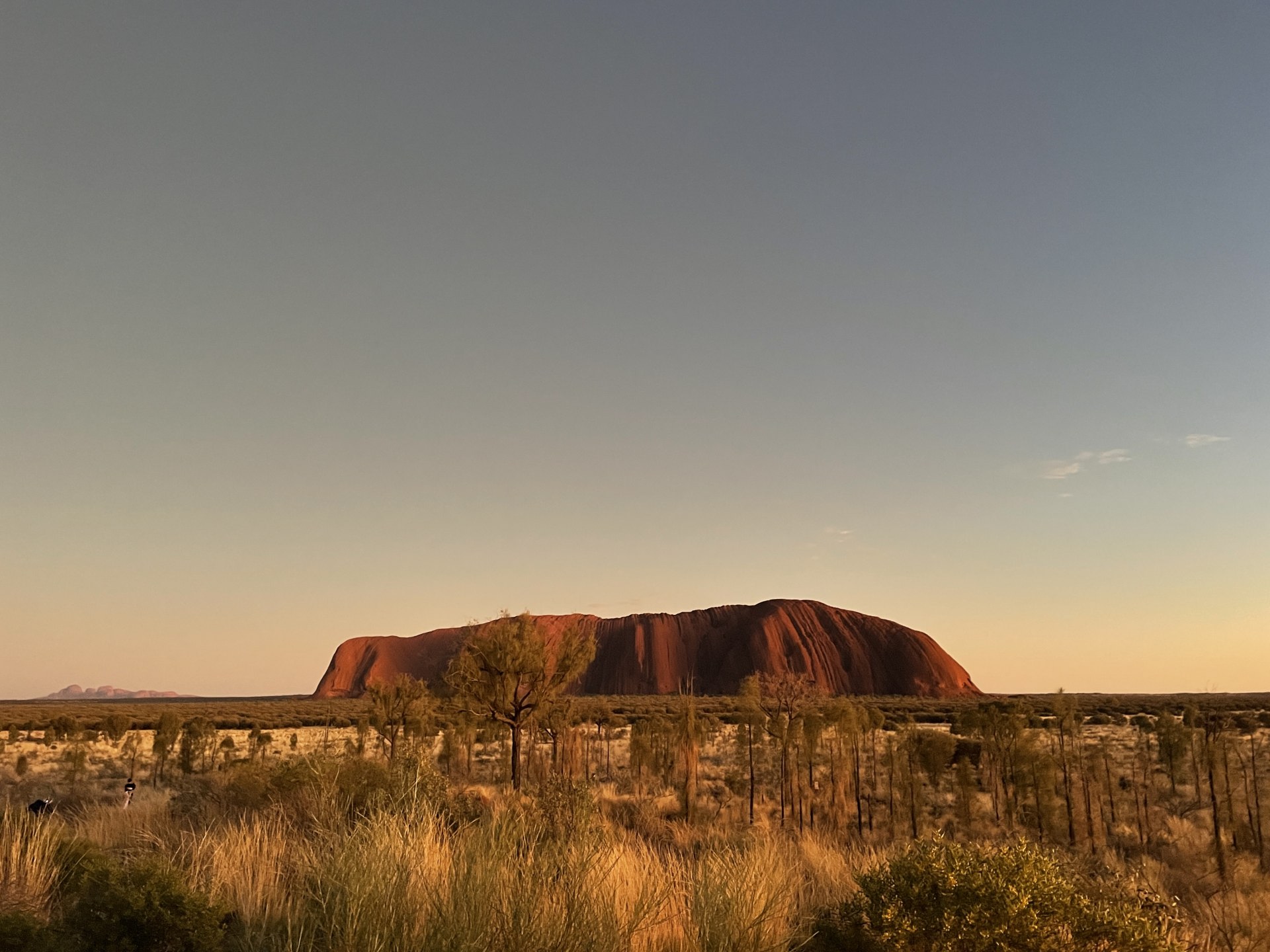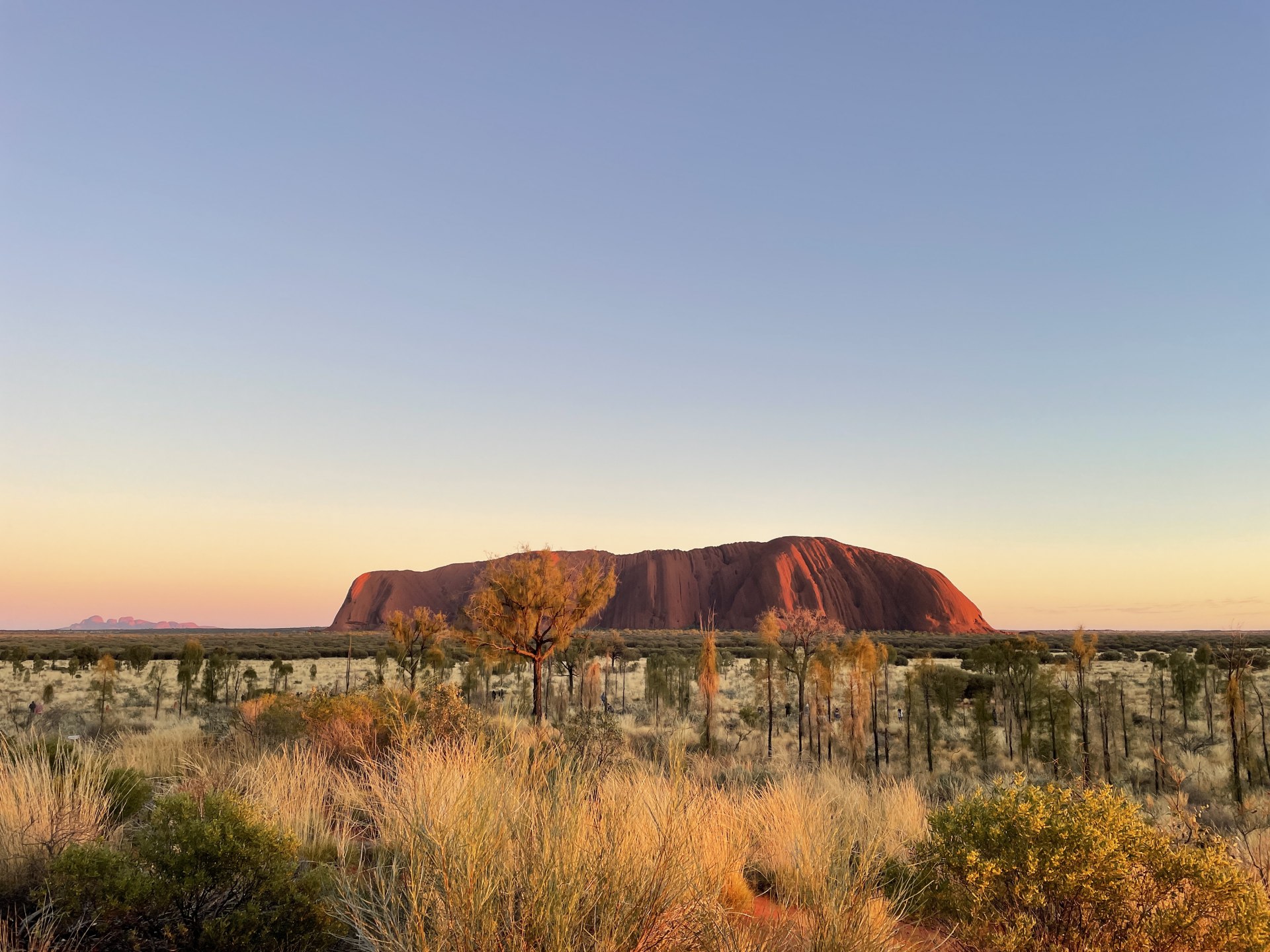 東の空が徐々に明るくなり、暗闇からウルルが現れ始める。