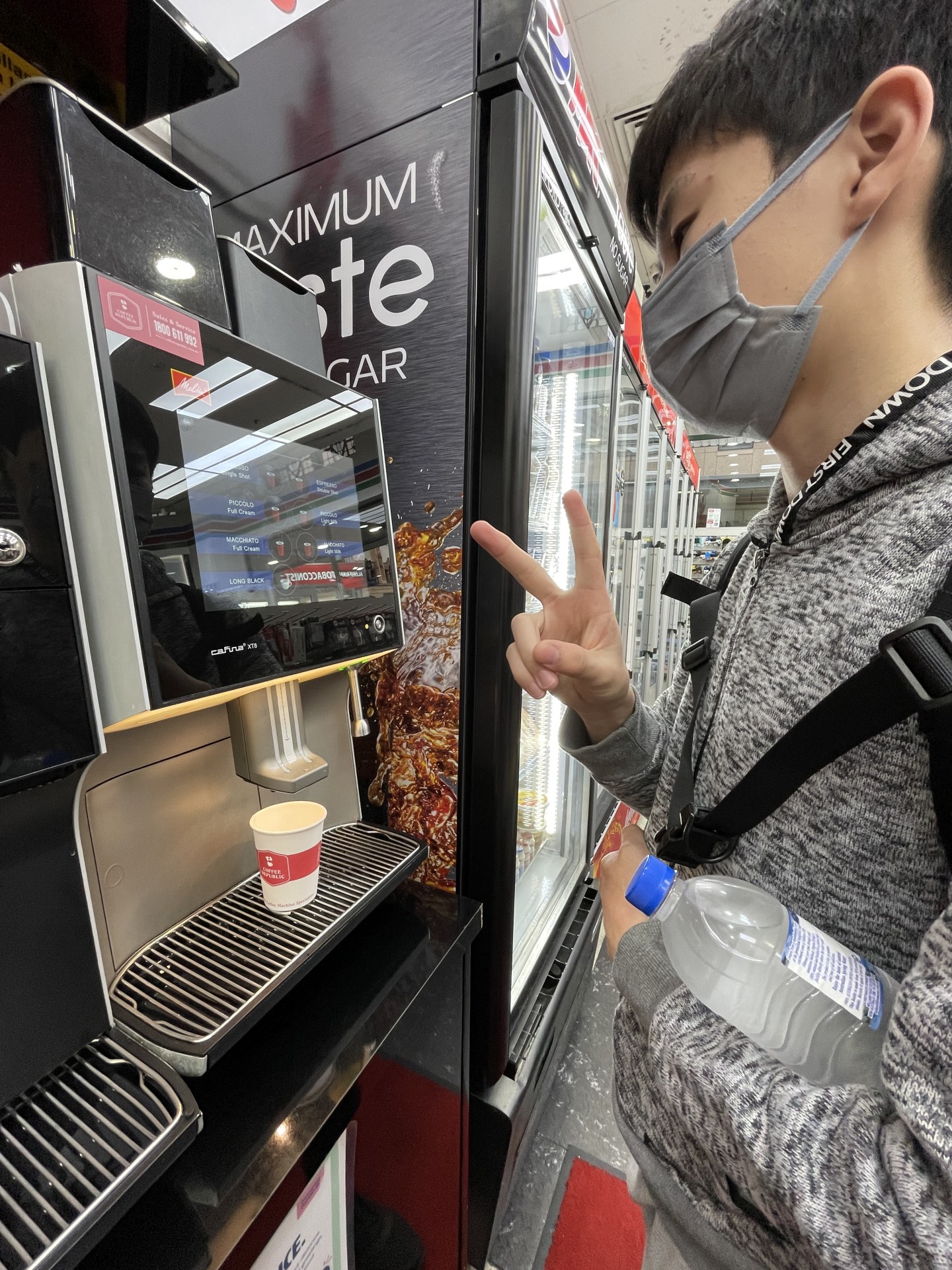 [写真:コンビニでコーヒーを購入。日本とほぼ一緒だが、お金は後払い