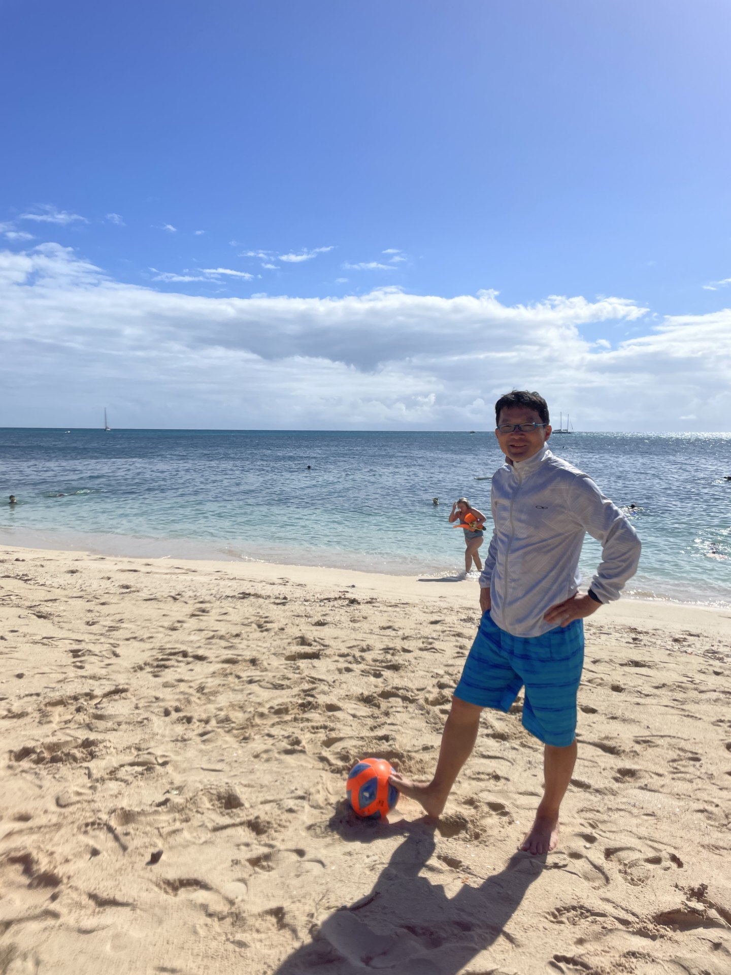 ランチ休憩を終えると、再びビーチへ行き、シュノーケリングに挑戦しようとするが……。