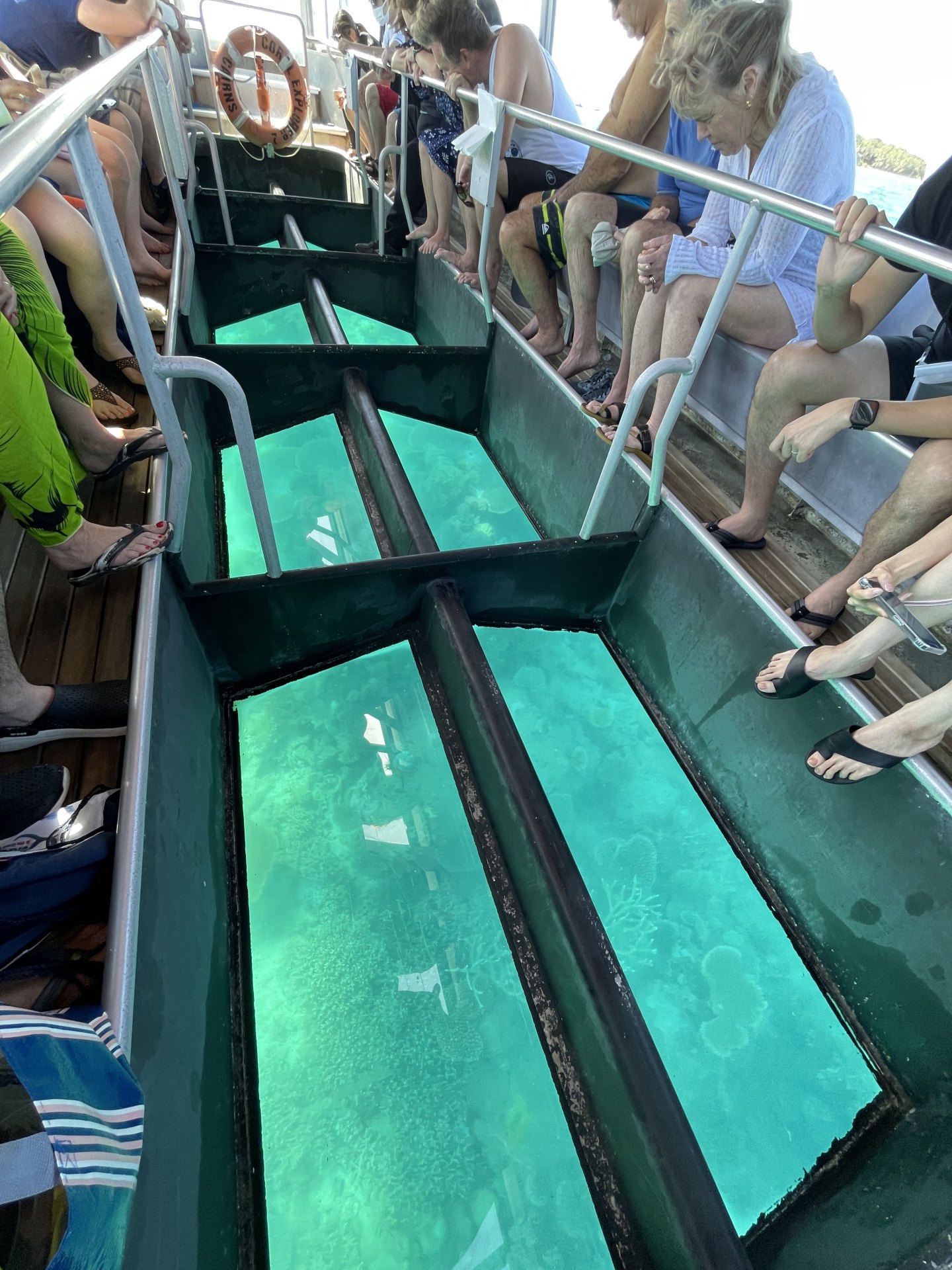 約30分ほどの時間をかけて、ガラス越しにグレートバリアリーフのサンゴ礁、魚たちの営みをガイドを聴きながら観察する。