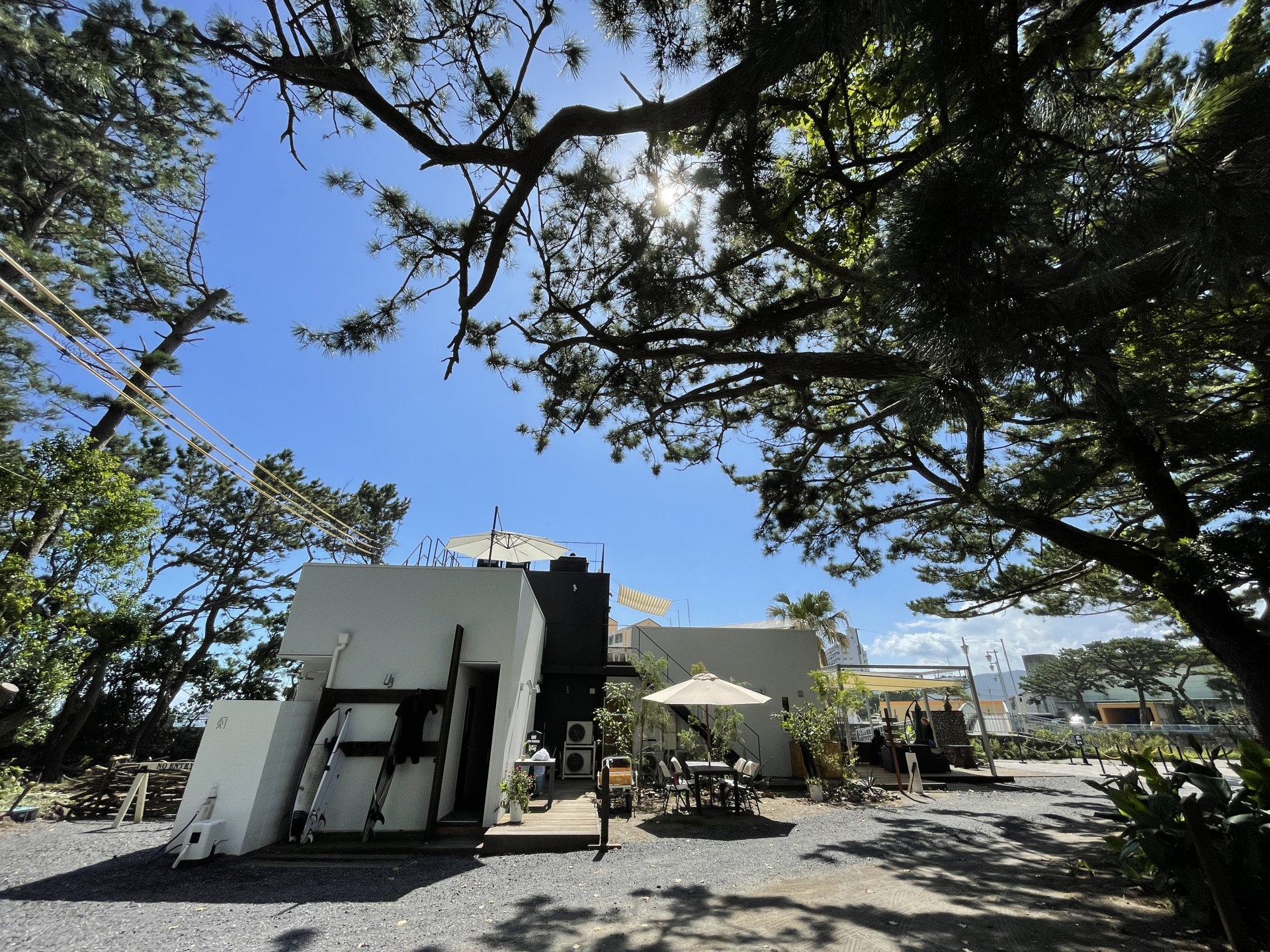 ビーチで汗を流した後は、POPS CAFEでオシャレにカロリーを摂取すると、午後はサーフィン体験。
