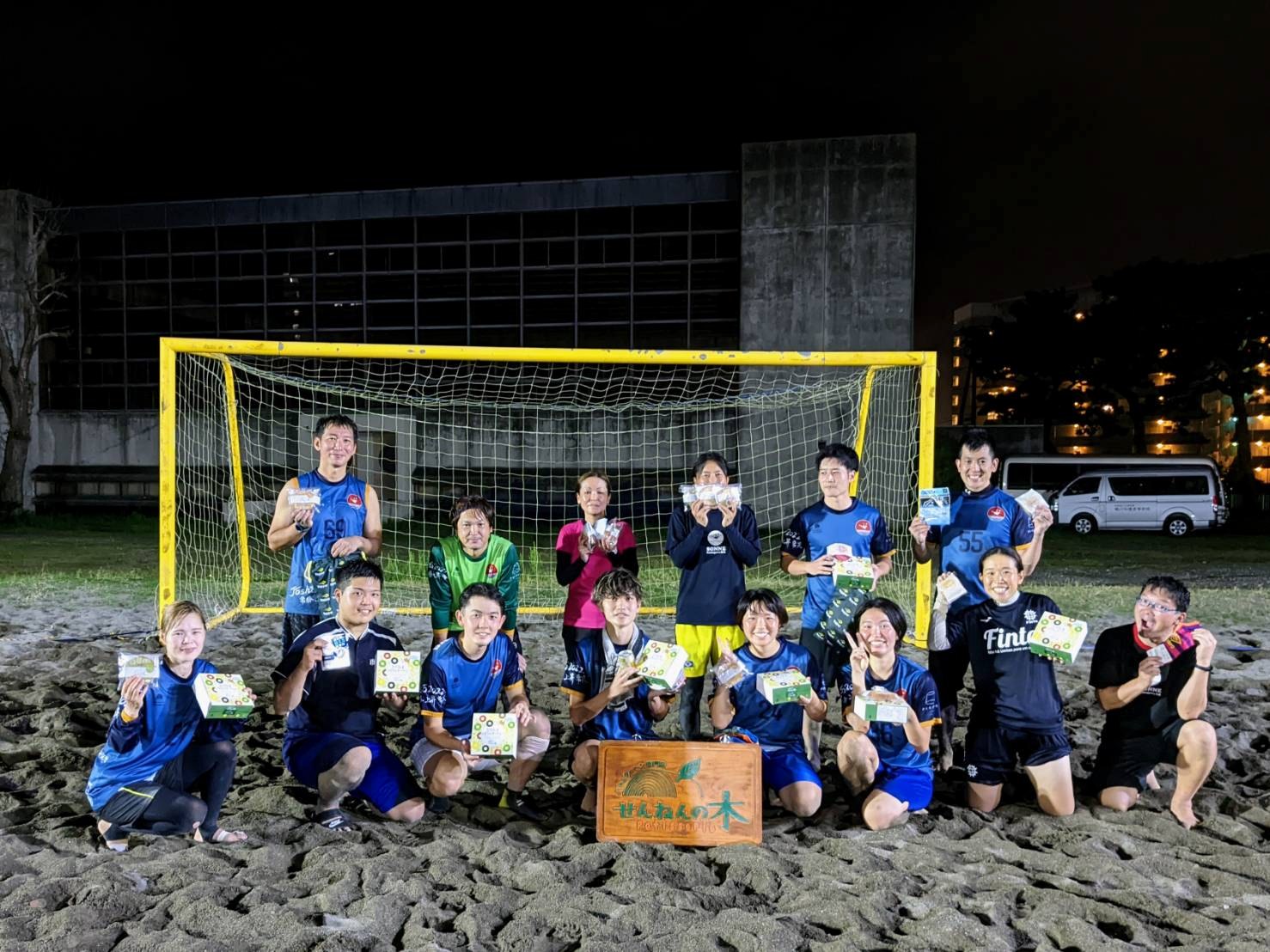 15名ほどのメンバーが集まり、約2時間にわたって、ビーチサッカーの試合を楽しんだ。
