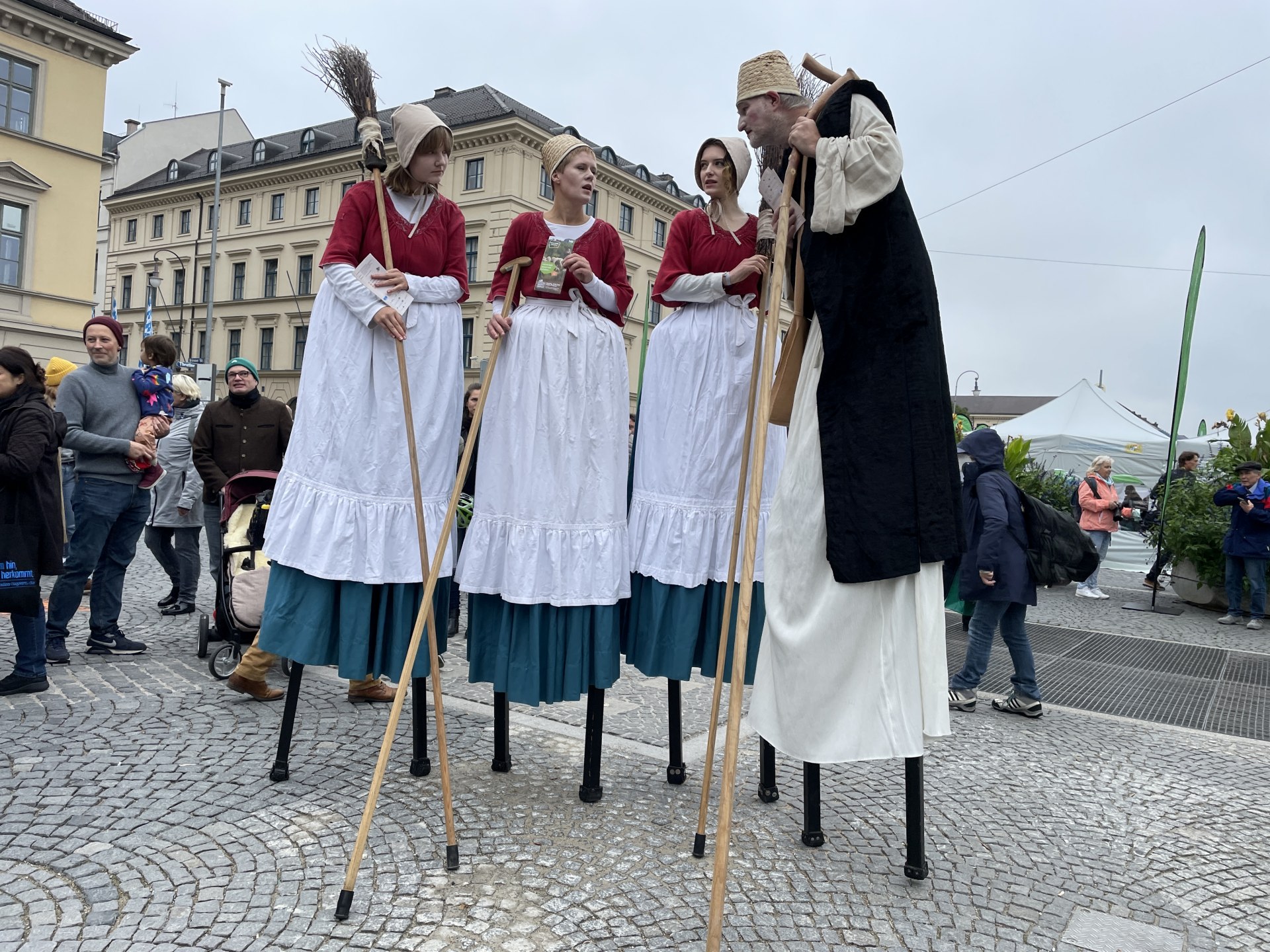 マリエン広場から北方へ地下鉄1駅分歩いてみると、「Odeonsplatz」駅周辺の広場ではちょうど日曜マーケットが行われていて、多くの人たちでにぎわっていた。おいしそうな肉料理やソーセージを頬張りながら、昼間からビールを飲む。さすがだ!!笑