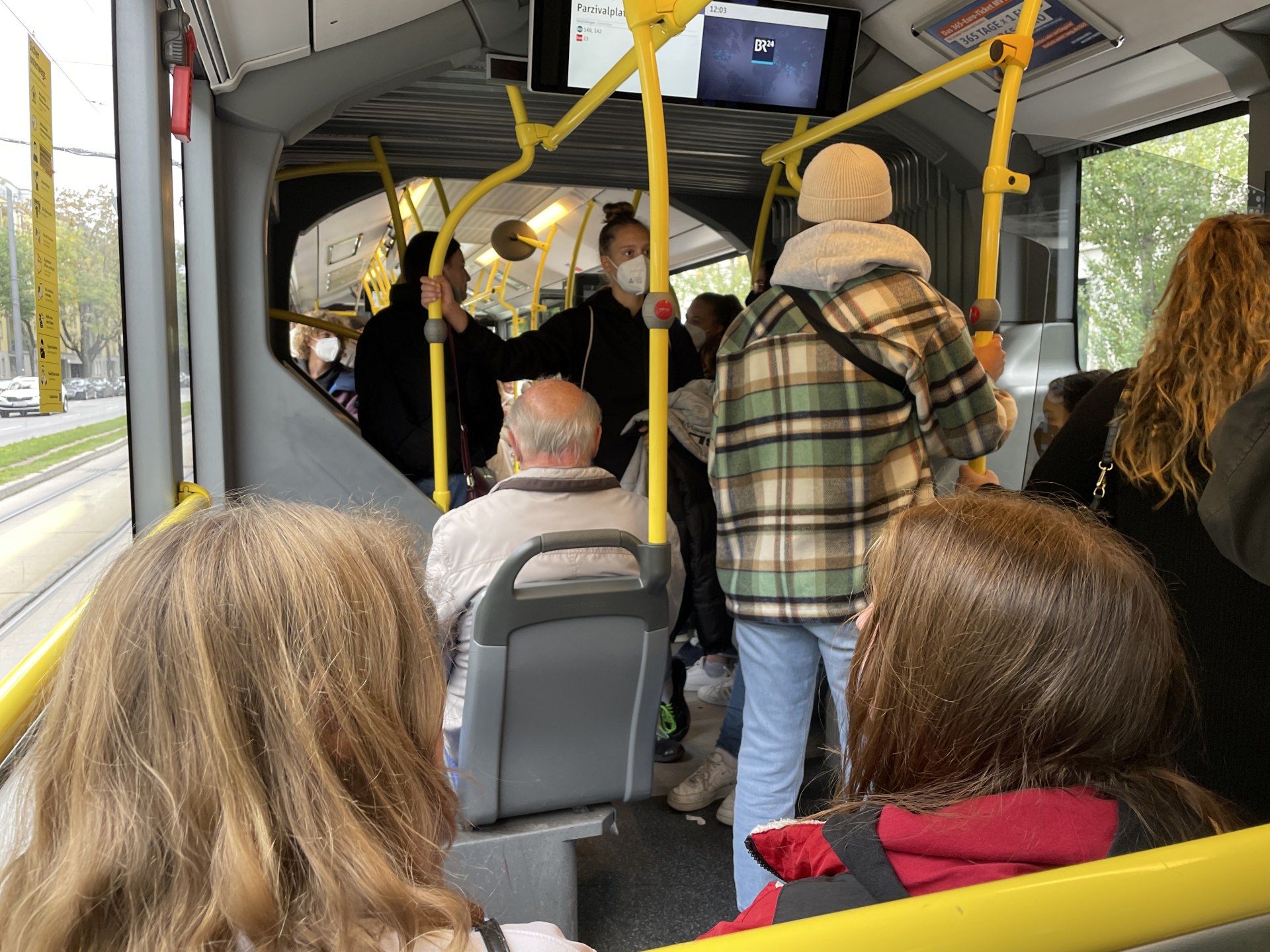 バスに乗り込むと、バイエルンの試合を見に行く人たちが続々と乗車してきて、気づいたら満員状態だった。