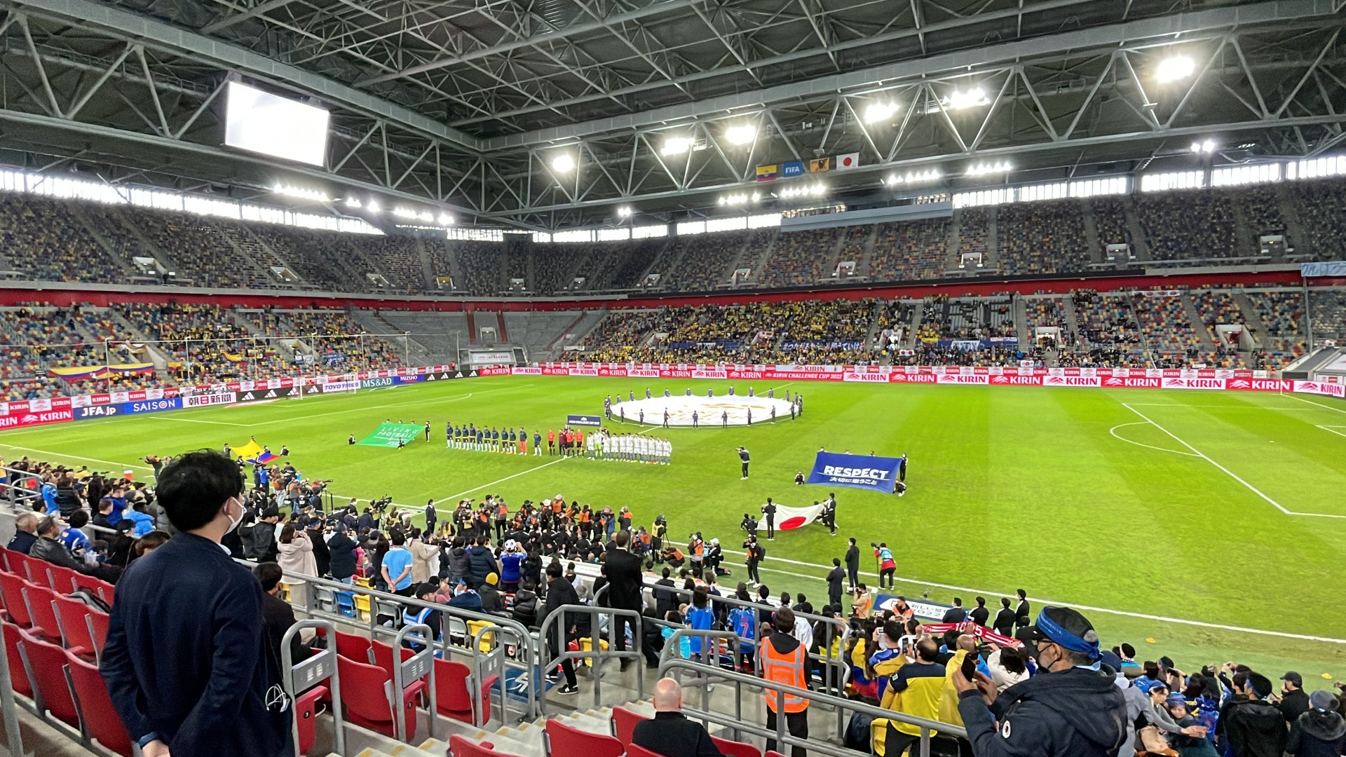 スタジアムに入ると、地元駐在の日本人が多く訪れていたが、それ以上にどこからともなくエクアドルサポーターが退去して押し寄せてきて、日本のホーム扱いのはずが、いつしかエクアドルホームのような雰囲気となっていた。