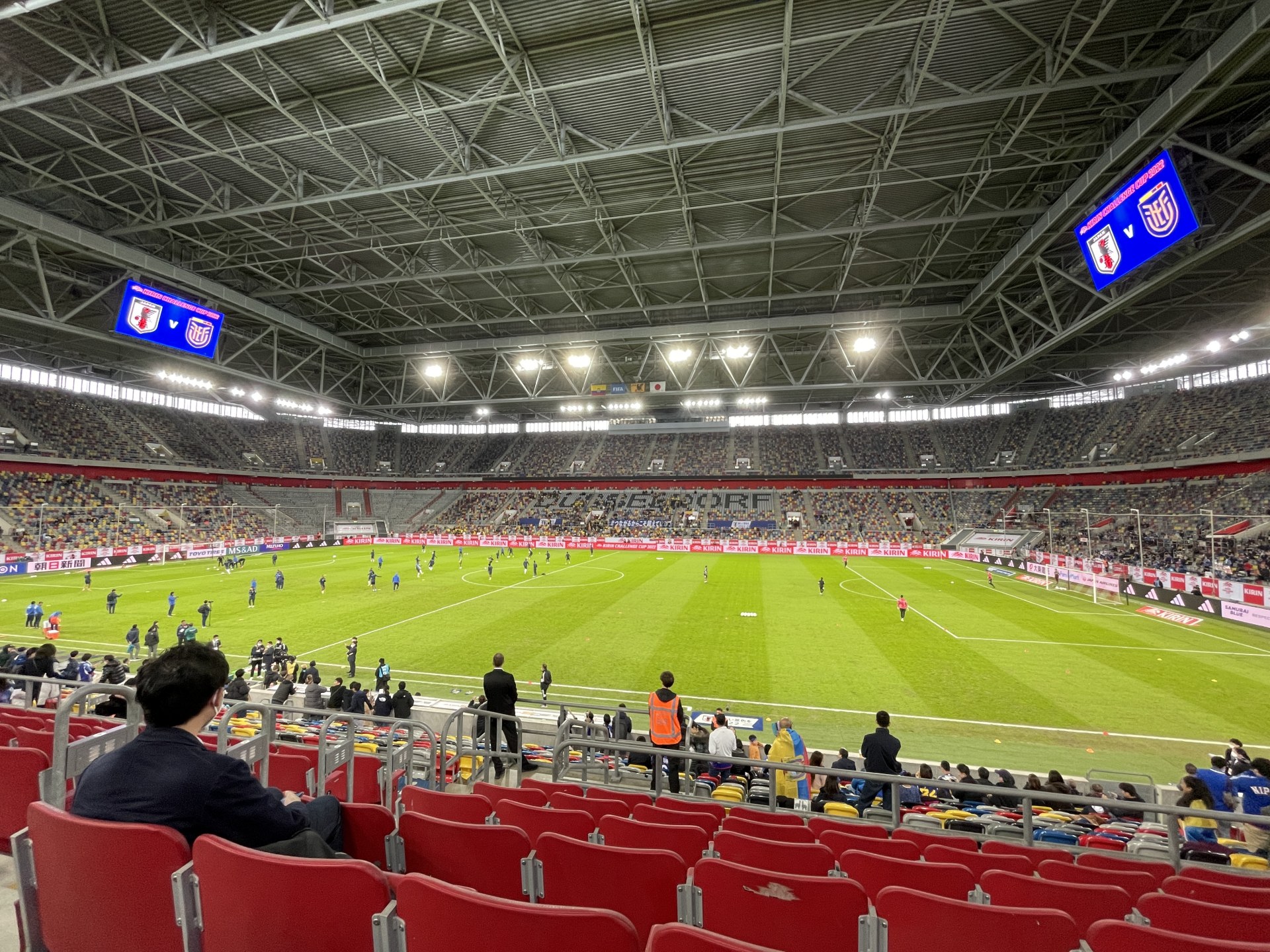 午後は新田さんたちと、デュッセルドルフで行われる、キリンチャレンジカップの日本代表 vs エクアドル代表の試合を観戦に行った。