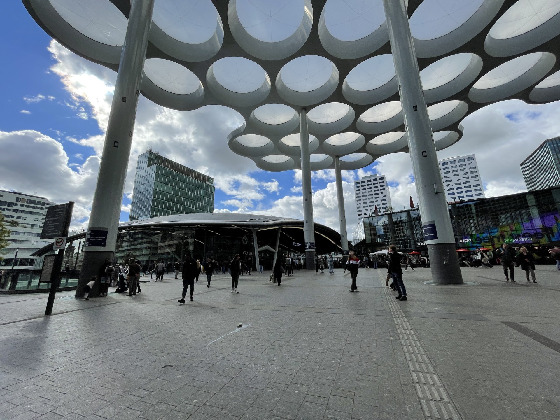 [写真:旧市街とは違って近代的なユトレヒト中央駅前