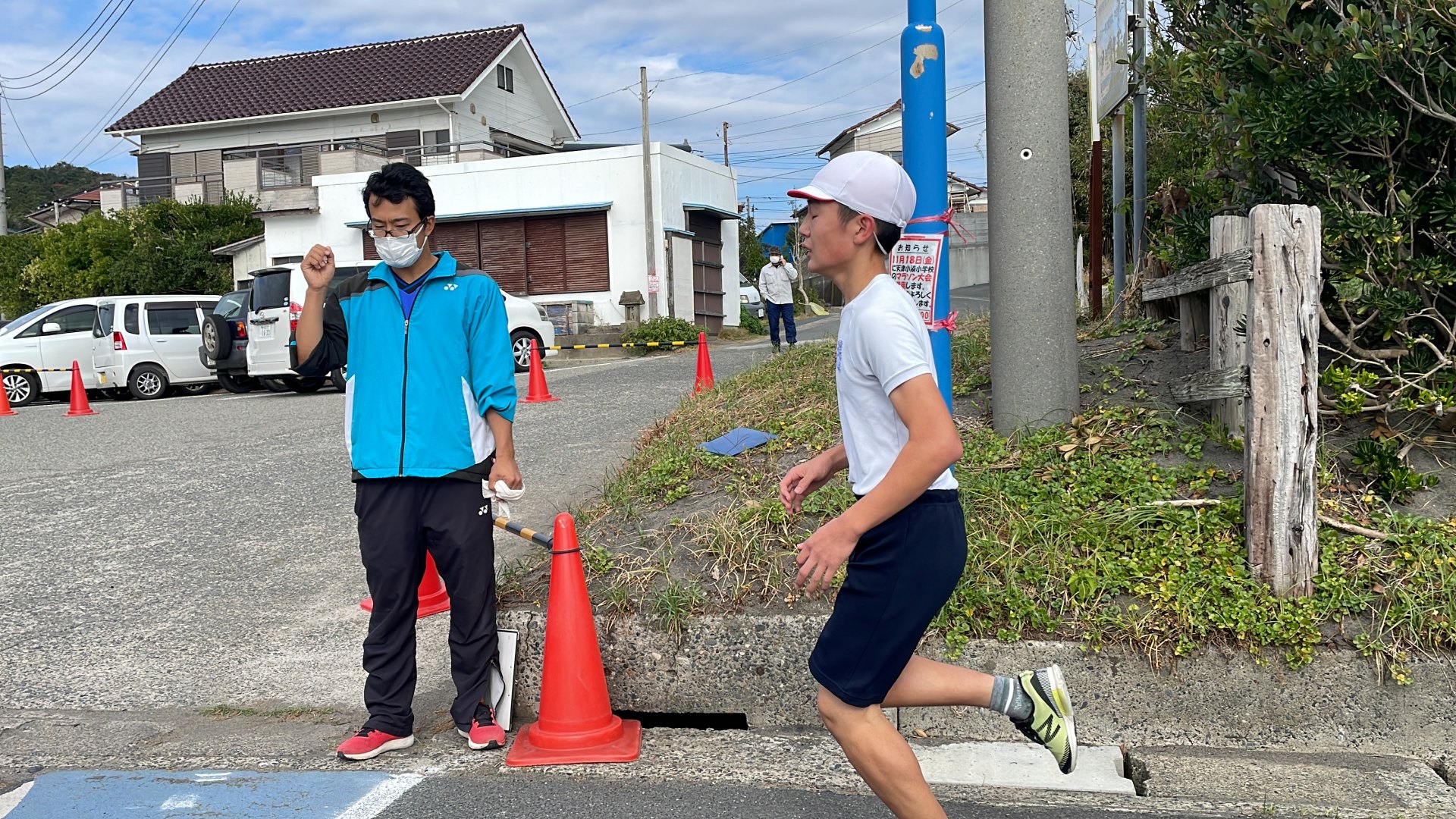 午前中、二タ間海岸から天津漁港の海沿いの道路にて行われた、天津小湊小学校のマラソン大会を応援しに行く。
