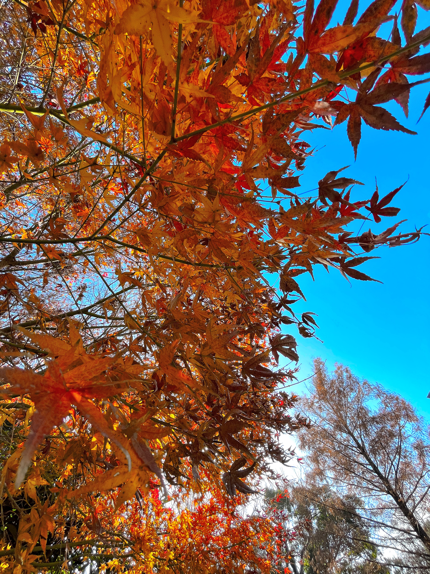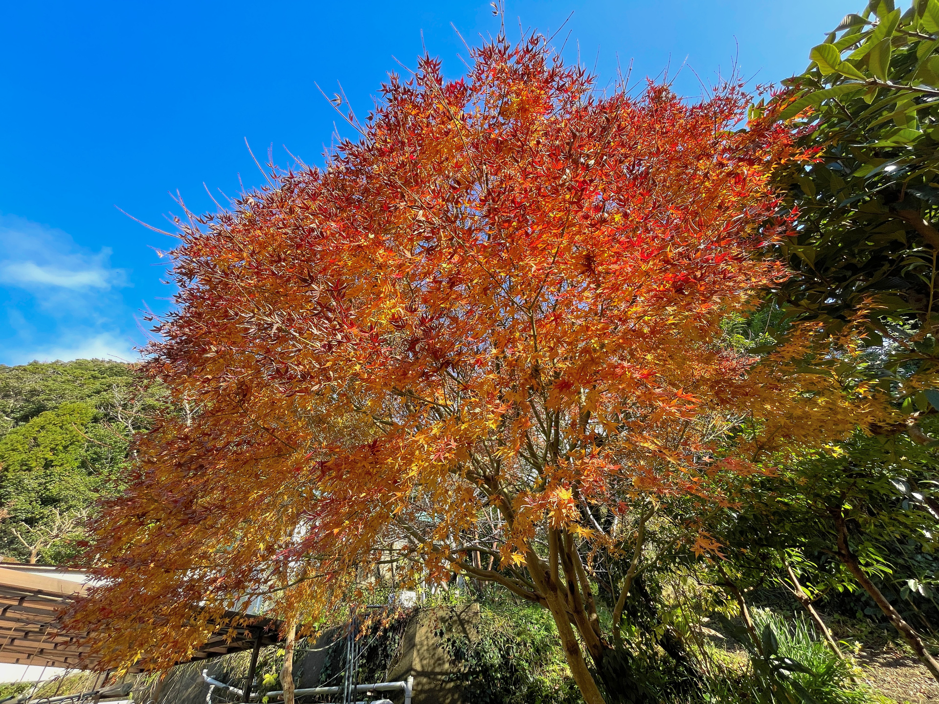 [写真:青い空に映える紅葉