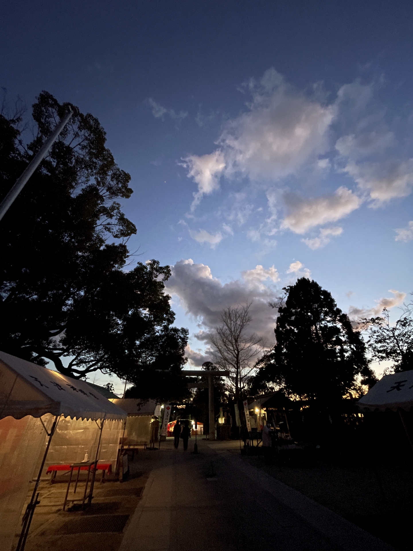 夕方、社殿から降りる際、夕空がなんともいえない光景だったので、思わずスマホで撮影。
