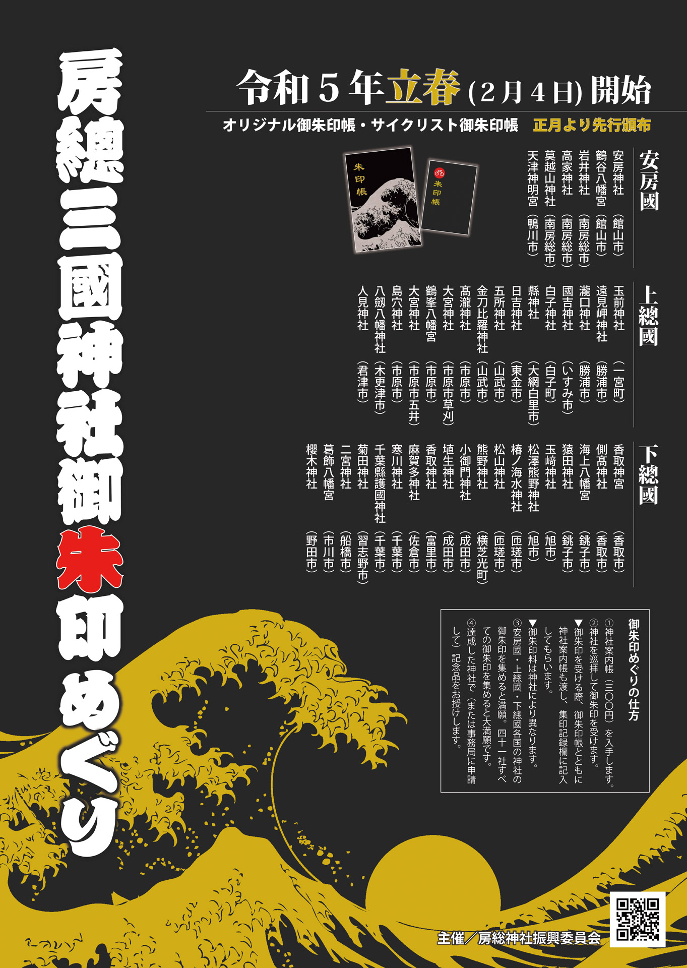 平成22年からスタートし、現在第3弾のバージョンで行っている「ふさのくに神社御朱印めぐり」が令和の御代に入って初めてリニューアルされ、いよいよ2月4日立春から「房總三國神社御朱印めぐり」として開始される。