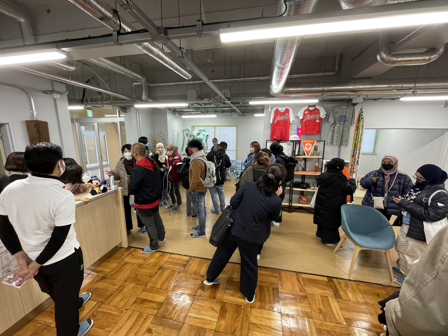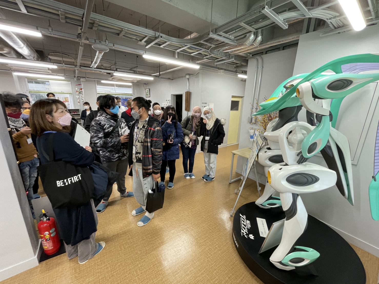 [写真:ヒューマンスケールを興味深く見学するブルネイ研修団の一行