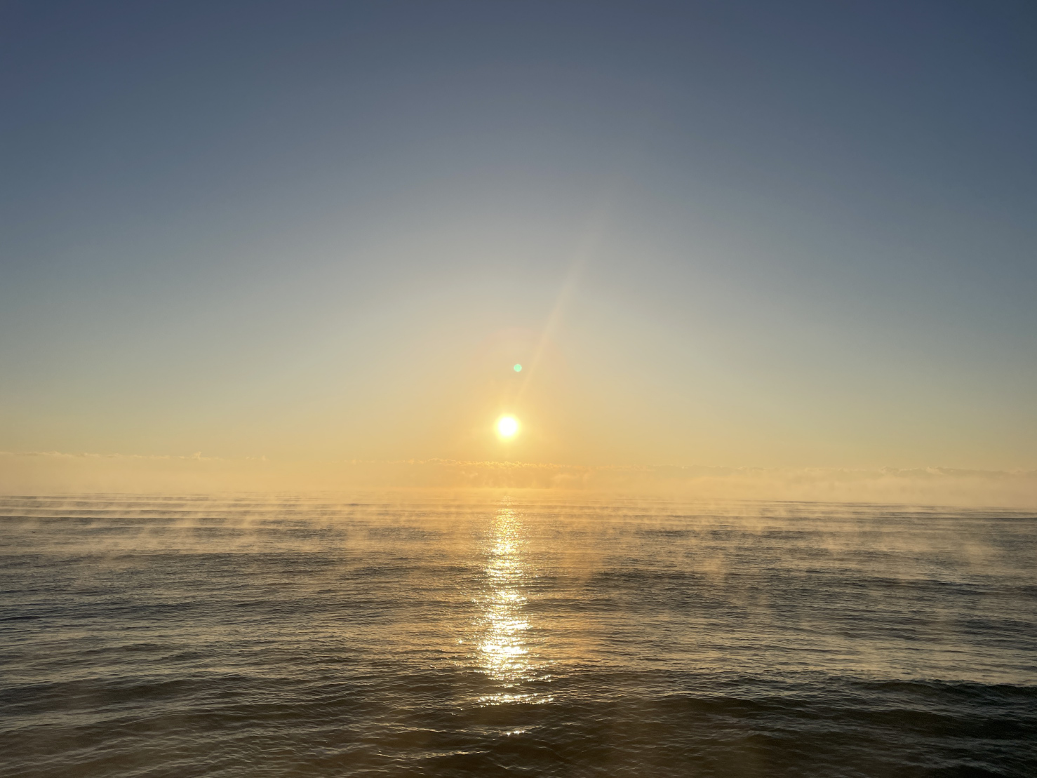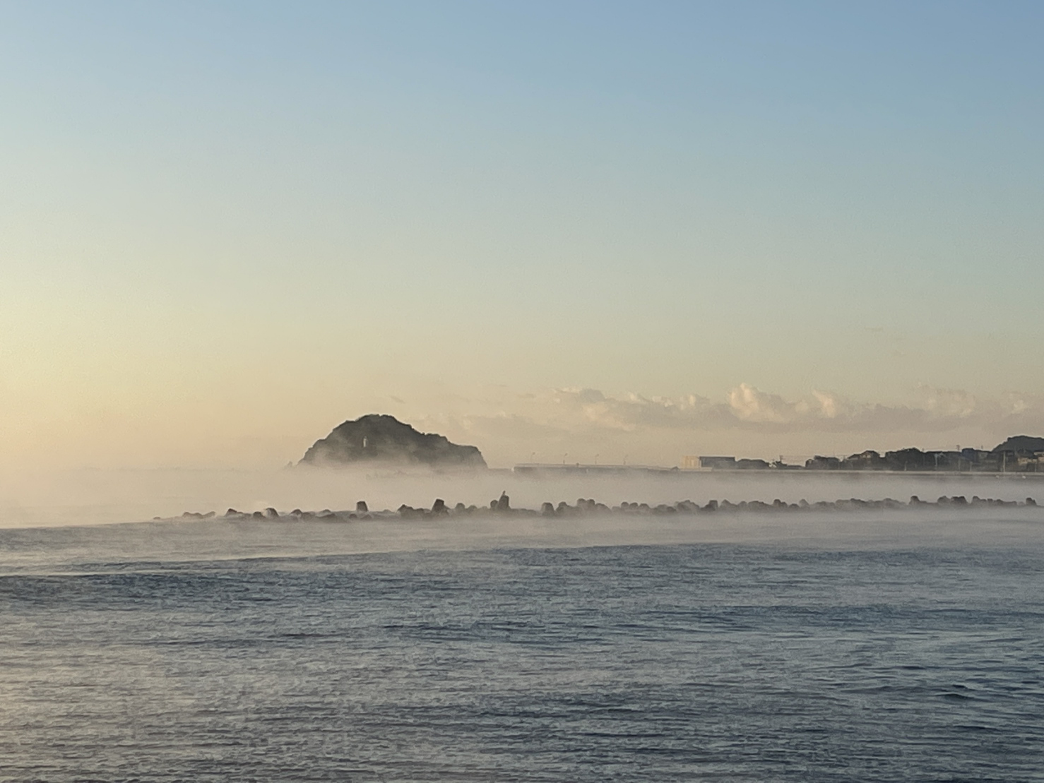 朝、長男を安房鴨川駅まで送迎して、ふと海に目をやるとなんとも幻想的で美しい光景が…。