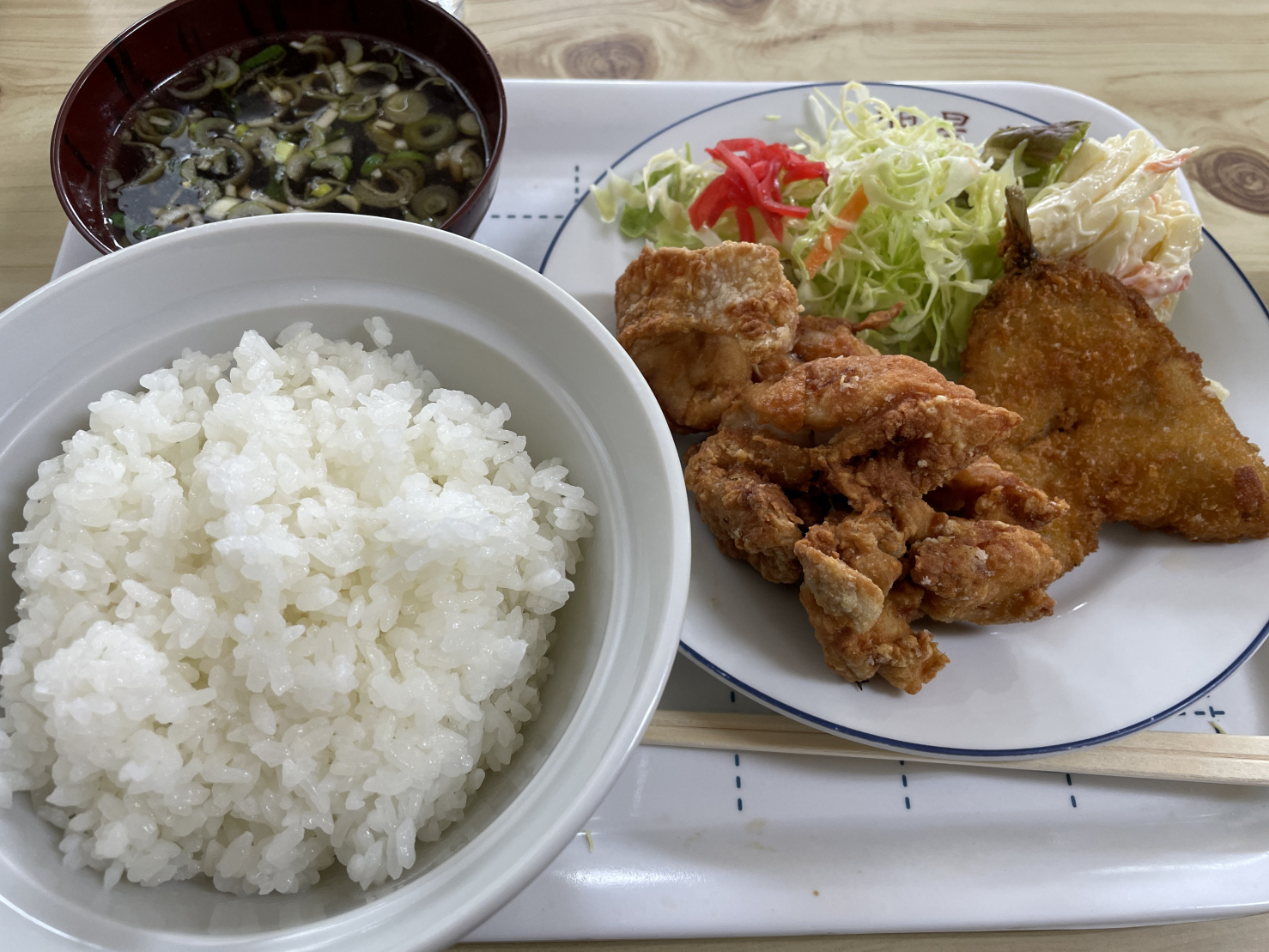 [写真:バリウム後の昼食。明星軒のE定食。このボリュームで650円。安し!うまし!