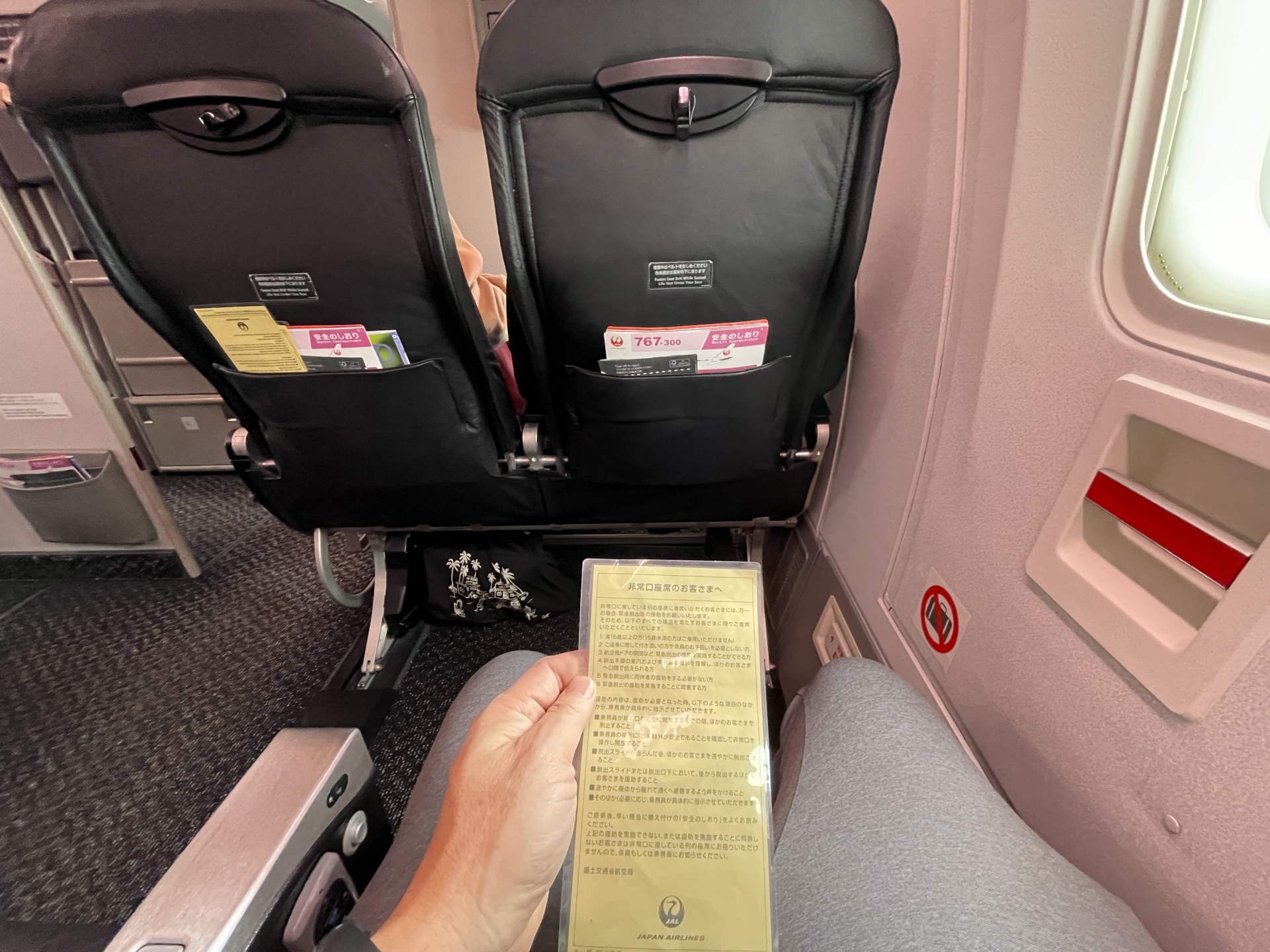 国内線ではあるが、比較的大型機材が使われており、非常口前は期待通りの広さ。