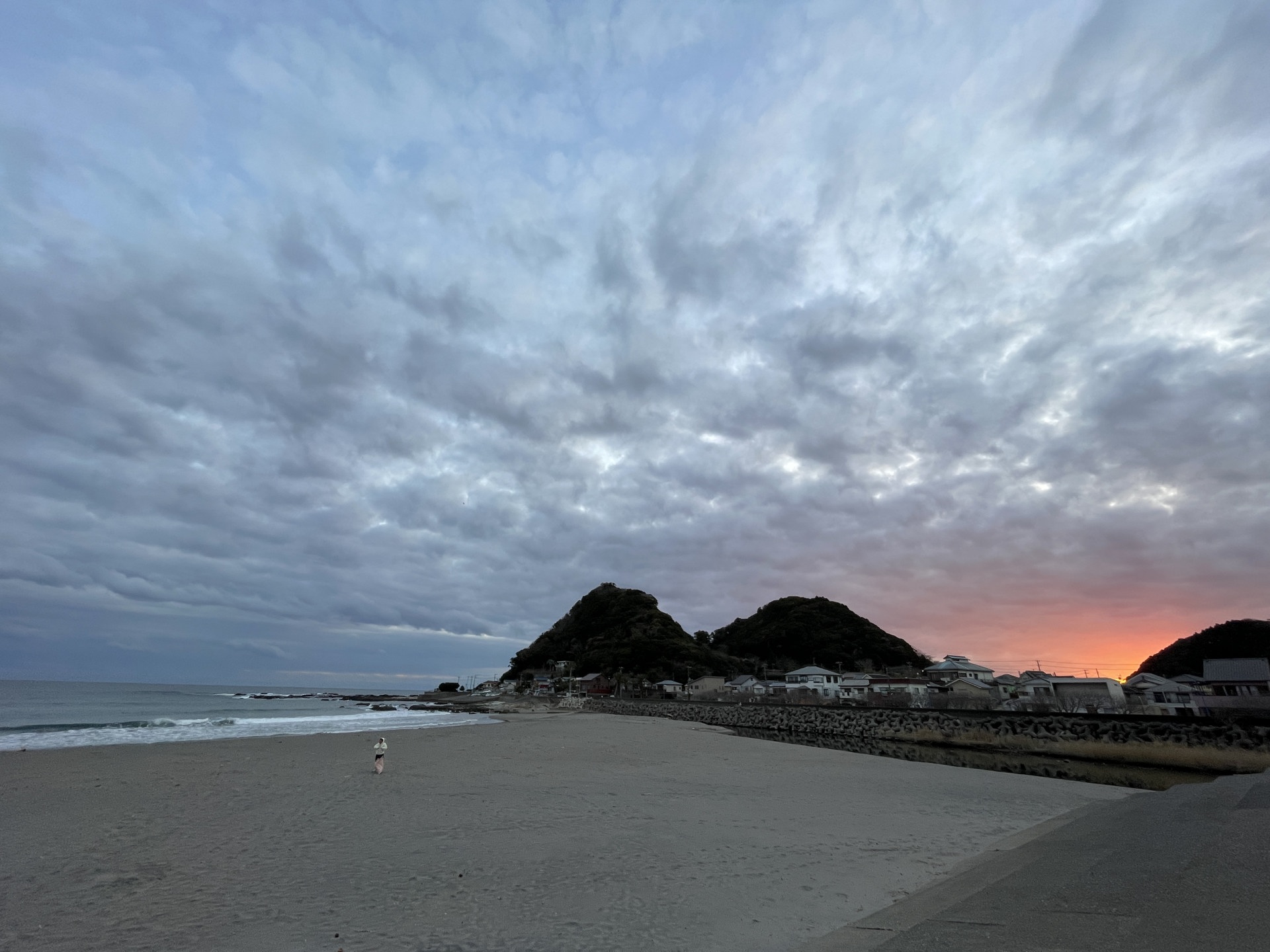 [写真:夕暮れの二タ間海岸。一人、ゴミ拾いをするヨンちゃん