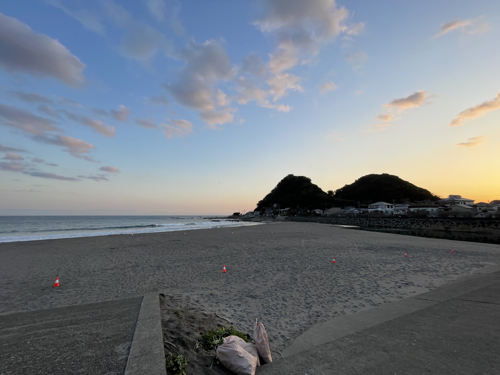 その後、小湊さとうみ学校からイベントで使用する備品を運び出した後、二タ間海岸へ行き、ビーチサッカーコートを設けるスペースのクリーニングを行う。